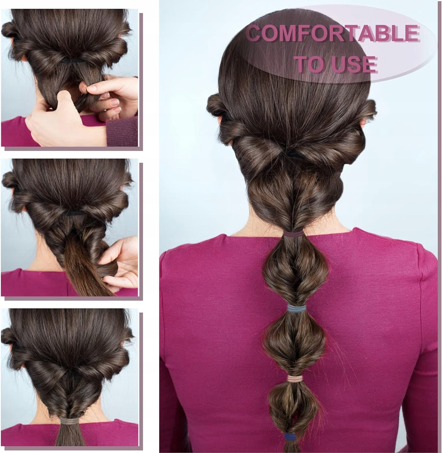 Наші гумки для волосся є гнучкими та безпечними, а це означає, що їх легко одягати та знімати, не завдаючи надмірного натягу волоссю.