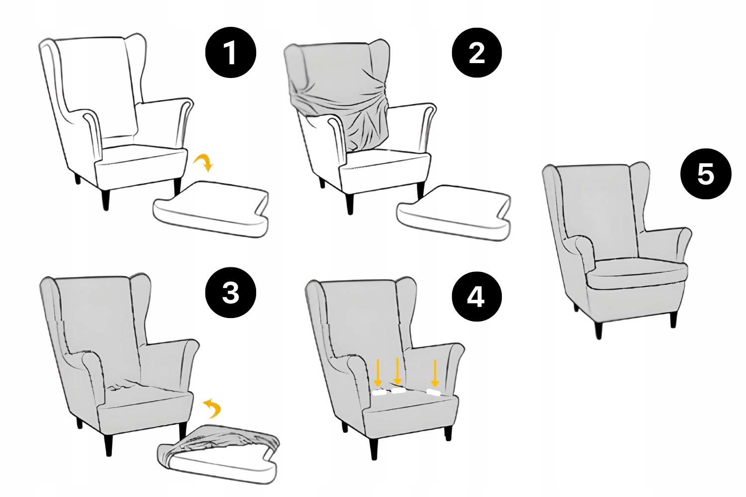 5️⃣ Заправте останні складки, покладіть подушку на місце і милуйтеся новим виглядом крісла!