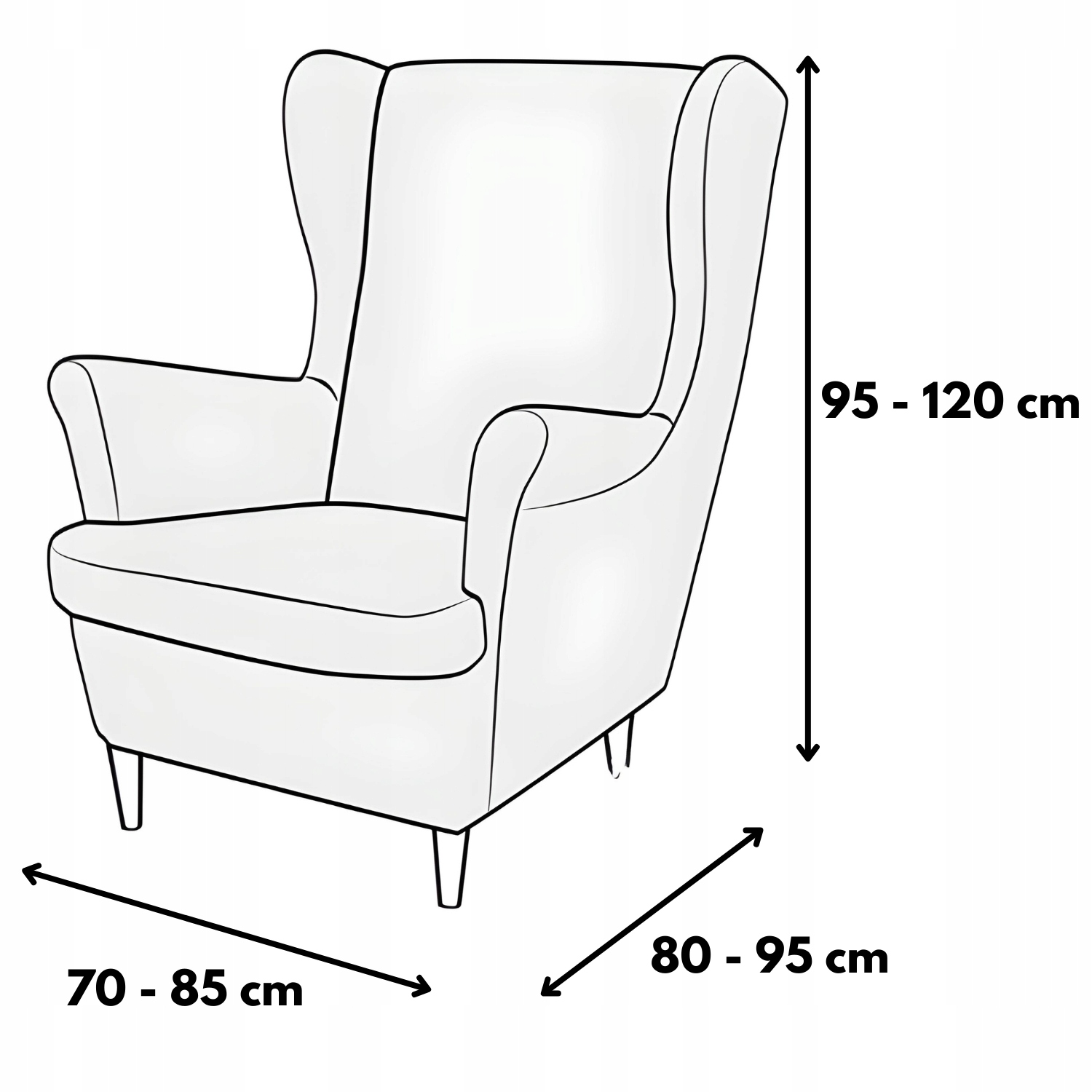 Чохол призначений для стільців із розмірами, показаними на малюнку нижче. Завдяки гнучкому матеріалу з додаванням спандекса, він ідеально підходить практично до будь-якого крісла, незалежно від його форми. Незалежно від того, чи має ваше вухо закруглені боки чи прямі лінії, чохол More&Deco підійде на нього ідеально. Еластичність матеріалу означає, що чохол не мнеться і не рухається, що гарантує естетичний вигляд щодня.