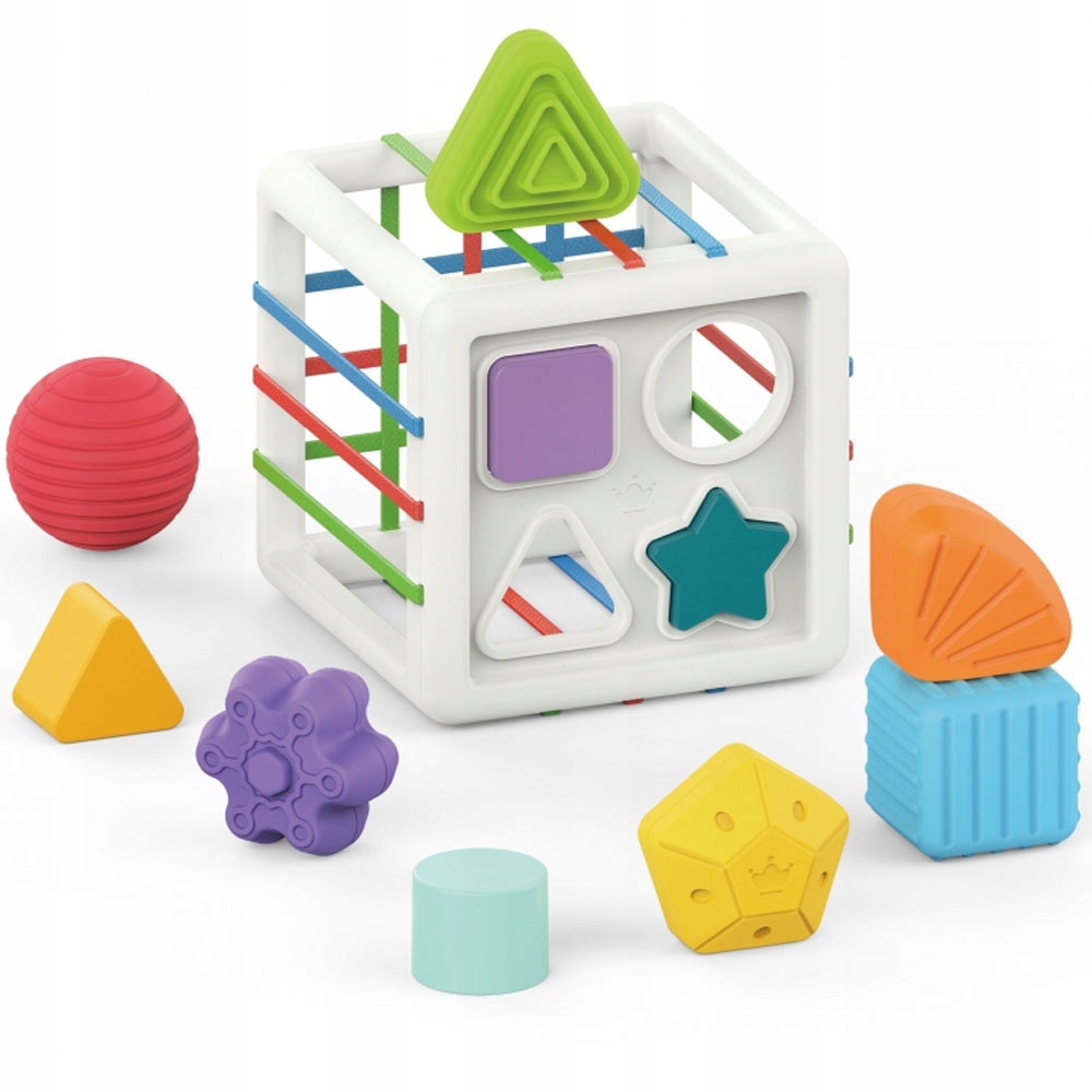 - набір включає: кубик сортер + 11 різноманітні жорсткі блоки