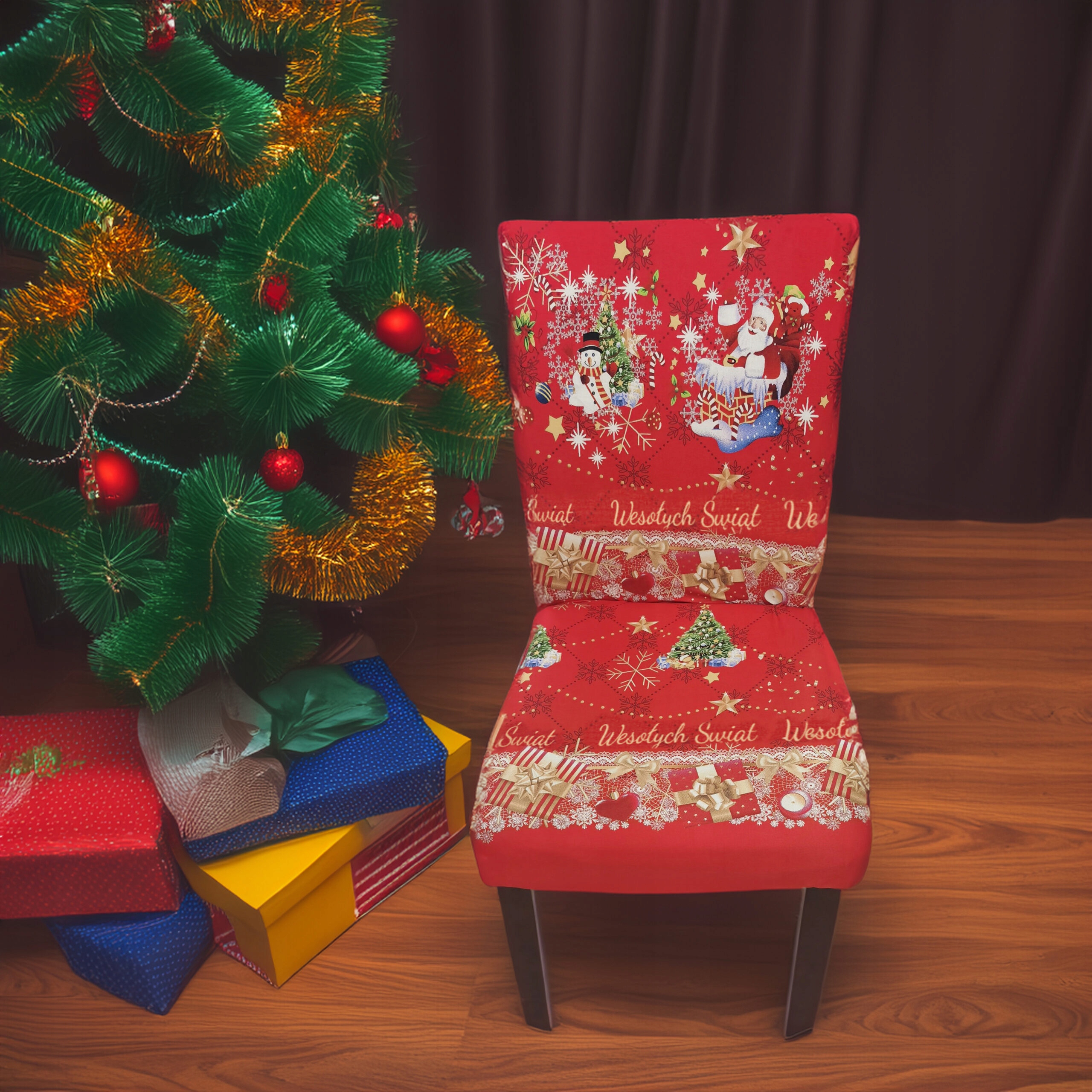 ELASTYCZNY POKROWIEC ŚWIĄTECZNY NA KRZESŁO BOŻE NARODZENIE