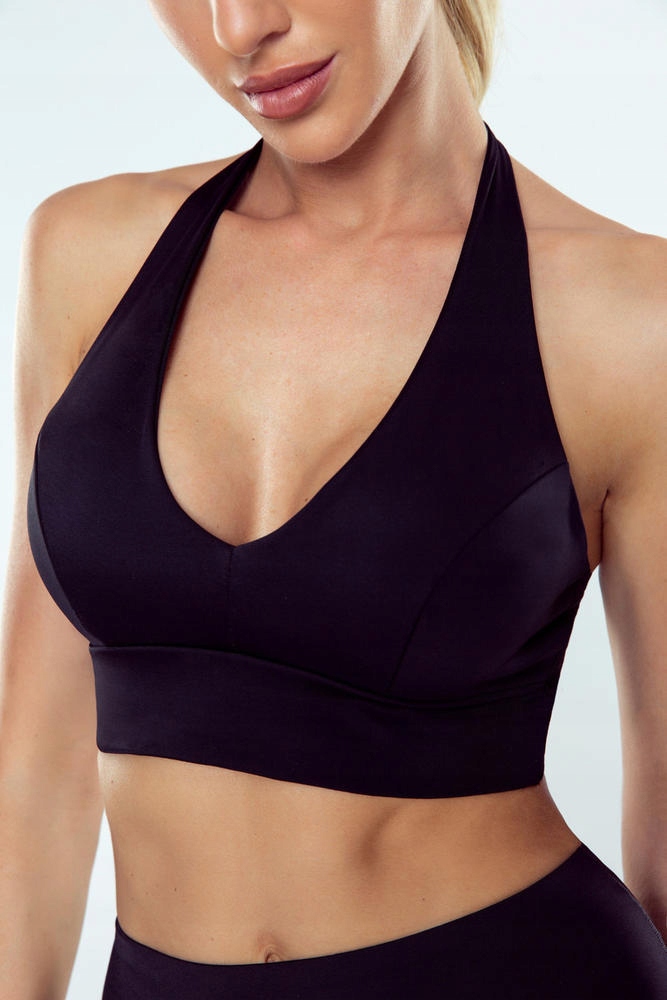 Спорт, м'який верх з глибоким декольте. Гнучкі, декоративні стрічки на спині. Верх має всередині кишені на бюсті, в яких можна покласти вставки. Бюстгальтер не має вставок у наборі. Ідеально підходить для тренувань або для носіння щодня.