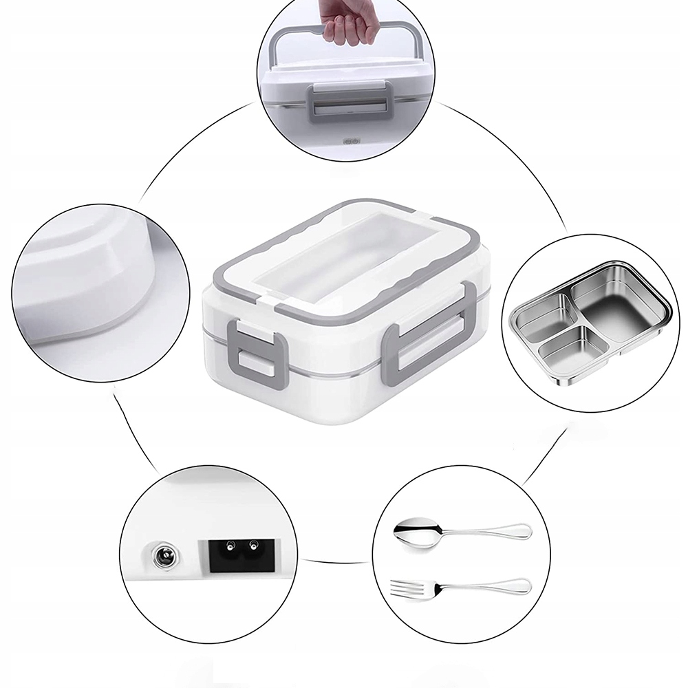 - Портативний ланч-бокс із підігрівом виготовлено з харчового поліпропілену та нержавіючої сталі 304, яка є екологічно чистою, нетоксичною, не містить бісфенолу А та міцною.