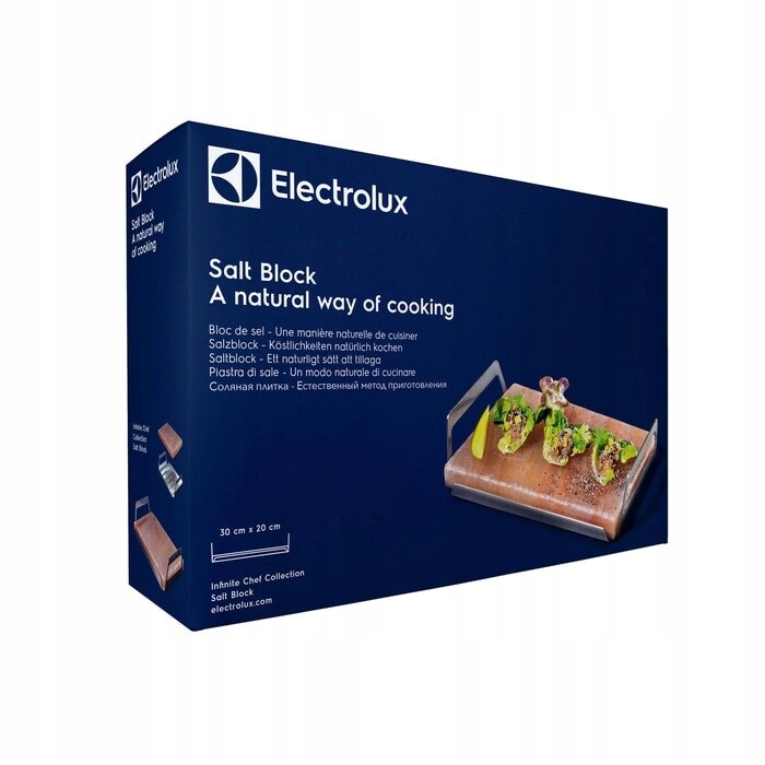 Соляний блок Electrolux оснащений елегантною сталевою ручкою, яка забезпечує рівномірний розподіл тепла. Дозволяє готувати їжу на плиті або в духовці. Без рами блок також можна поставити на гриль.
