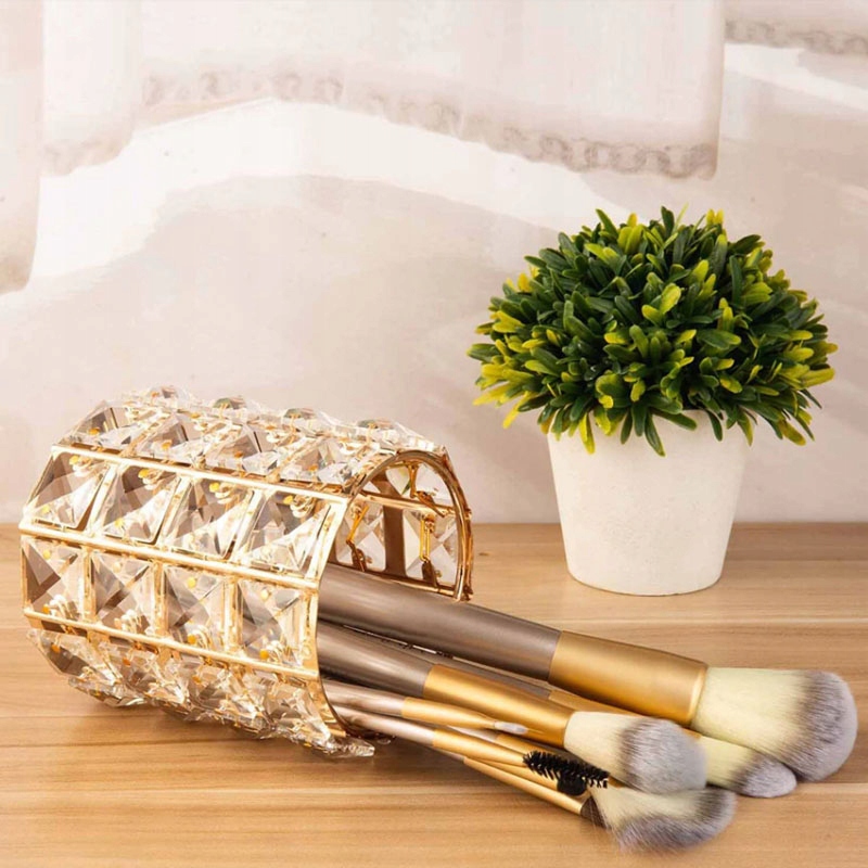 Органайзер змусить вас зробити свій щоденний макіяж швидше і без стресу, не хвилюючись, що ваш улюблений пензлик знову десь загубиться. Ви можете розмістити його на туалетному столику, у ванній кімнаті або на столі. Золотий колір і блискучі кристали дозволять вписати його в багато інтер'єрів.