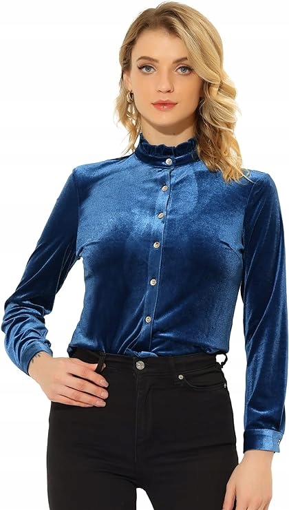 ELEGANCKA DAMSKA KOSZULA BLUZKA ZE STÓJKĄ NIEBIESKA XS