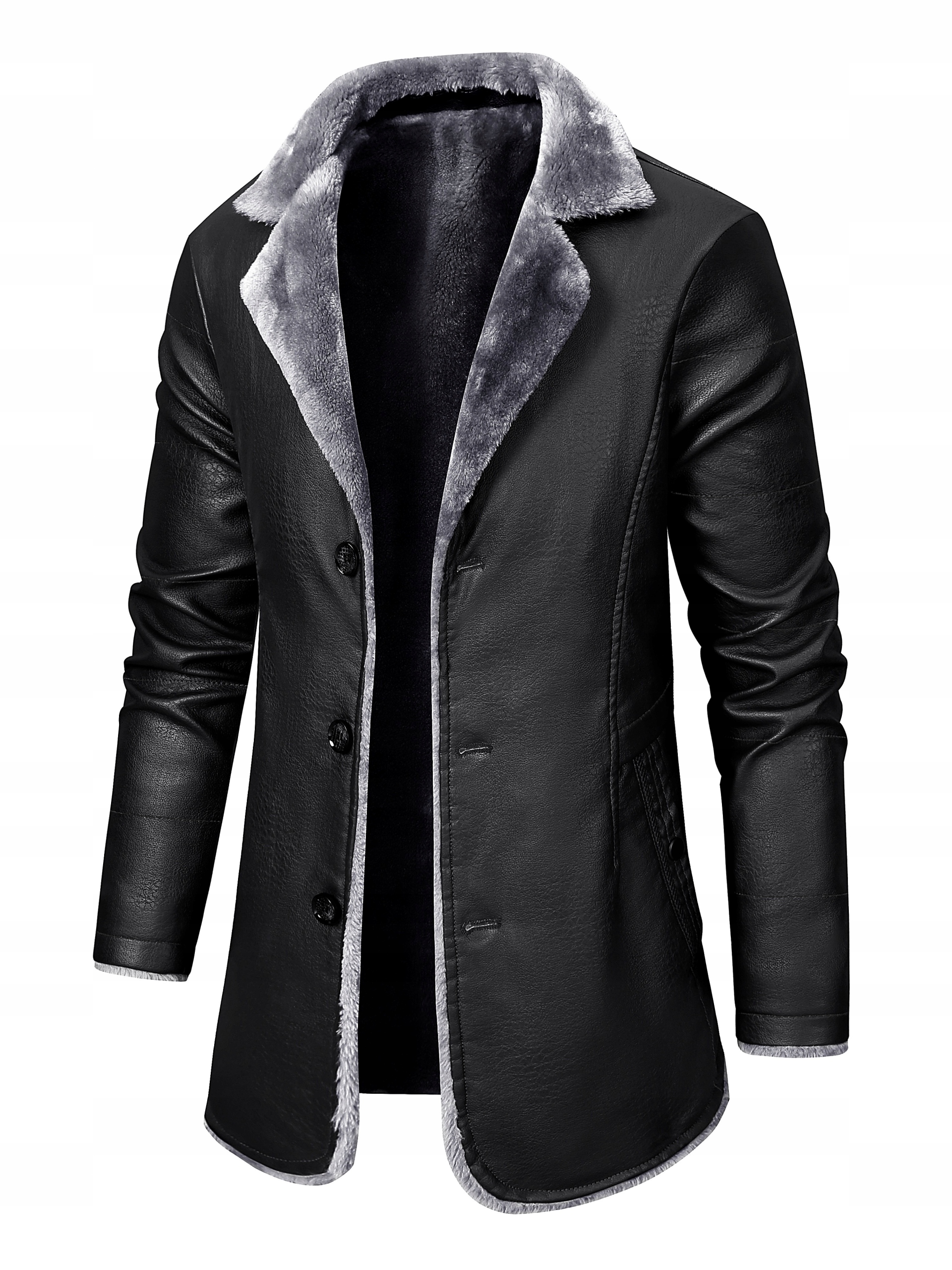 ELEGANCKI MĘSKI PŁASZCZ SKÓRZANY ZIMOWY JESIENNY