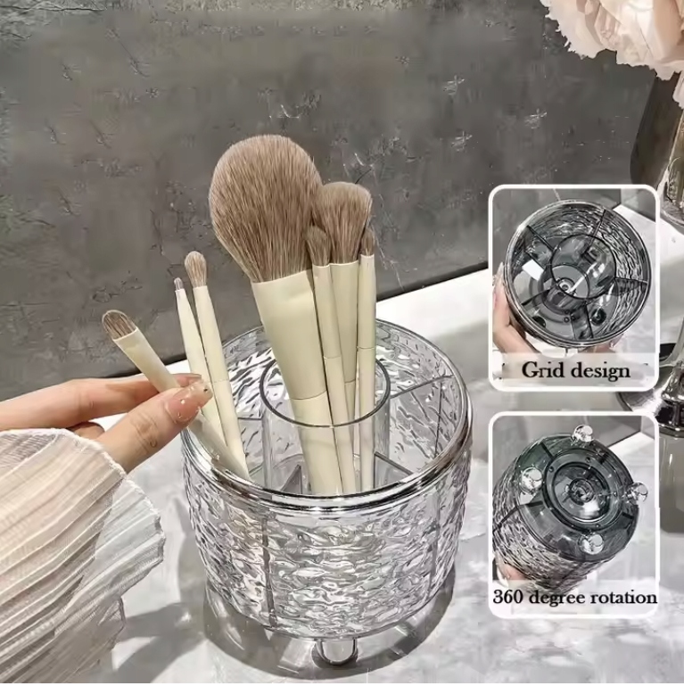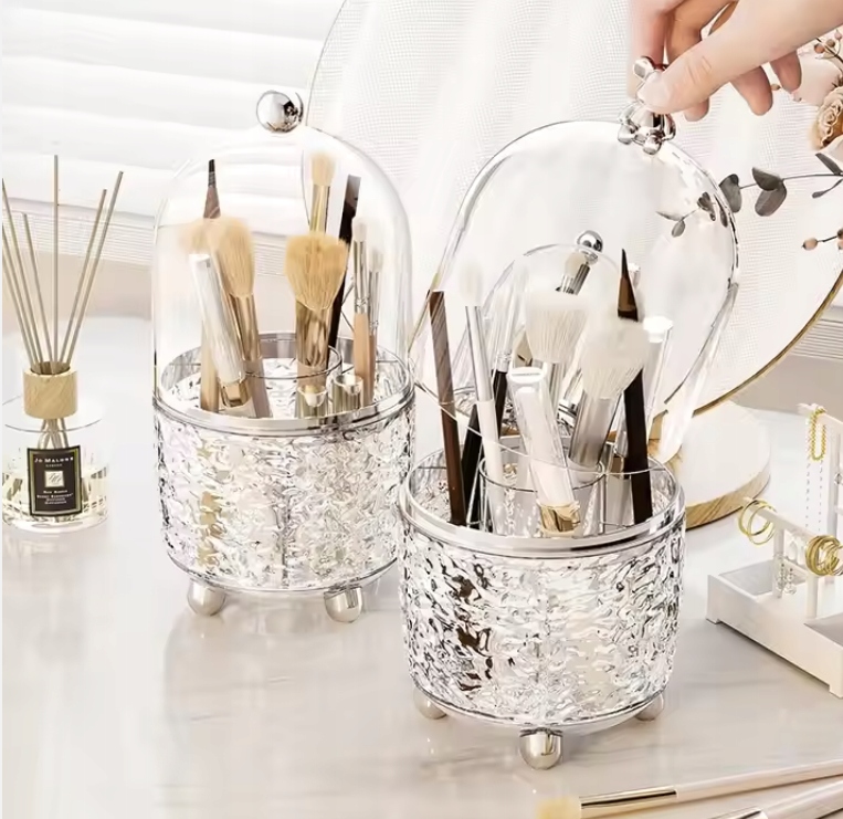 Elegancki stojak na pędzle kosmetyki z pokrywką obrotowy 360° do make-up