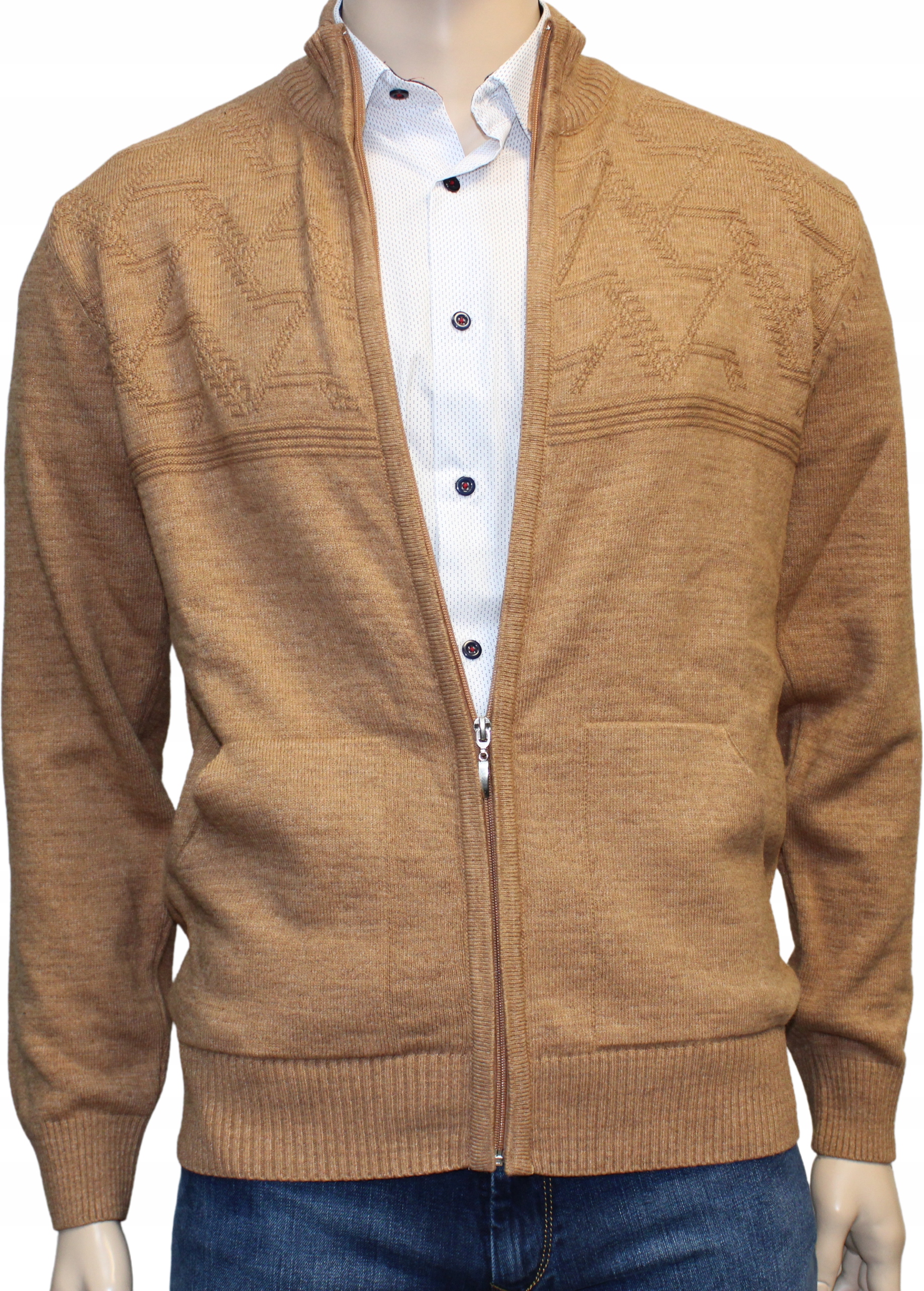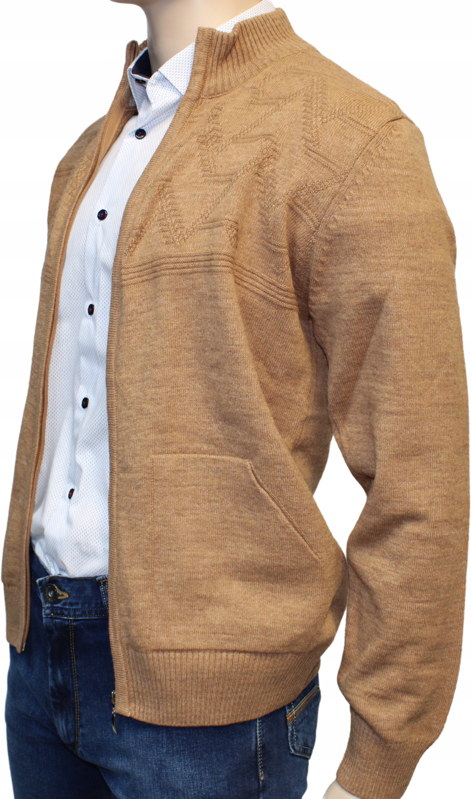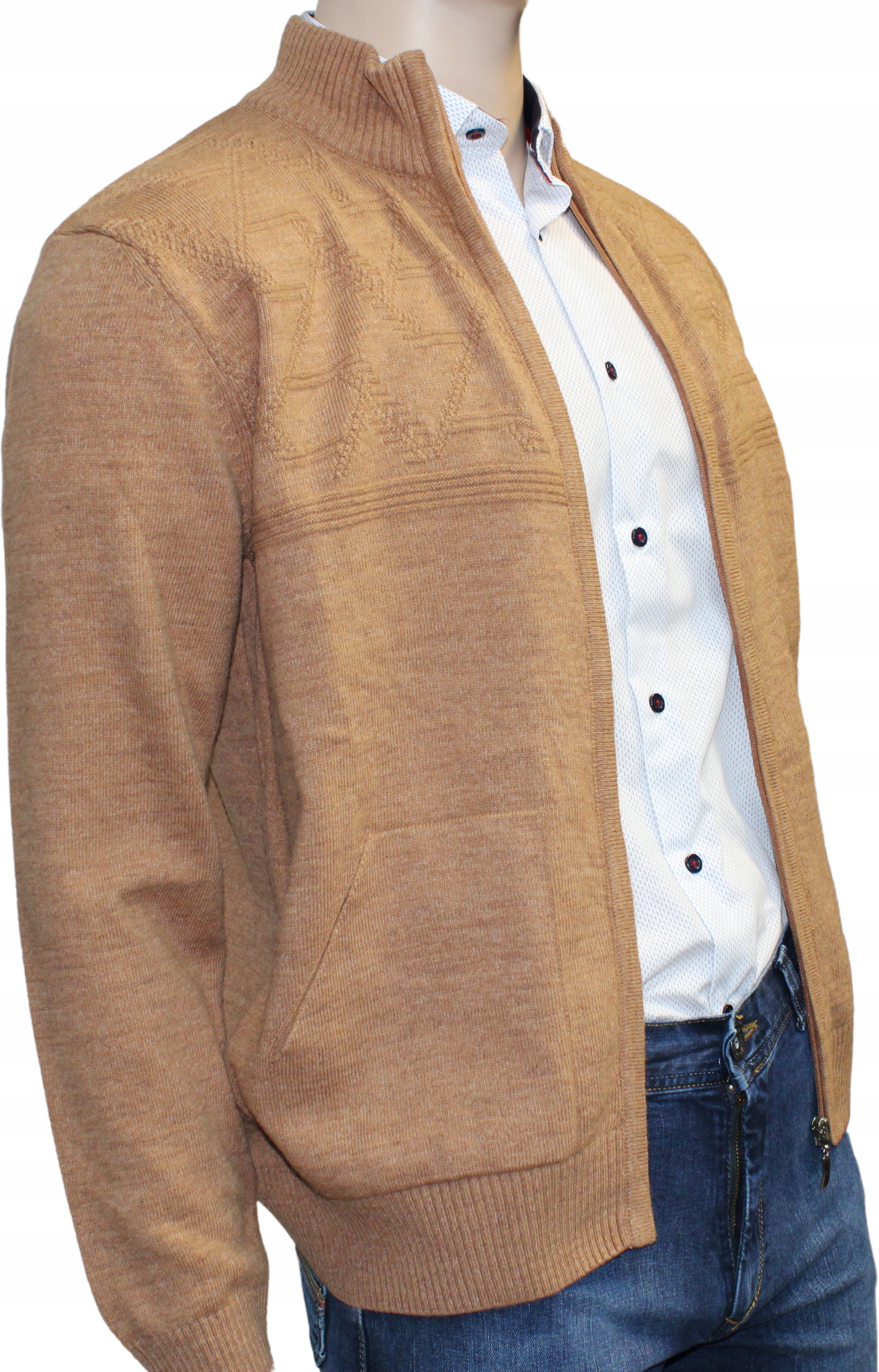 Elegancki Sweter Męski Rozpinany Kolor Brązowy roz XL