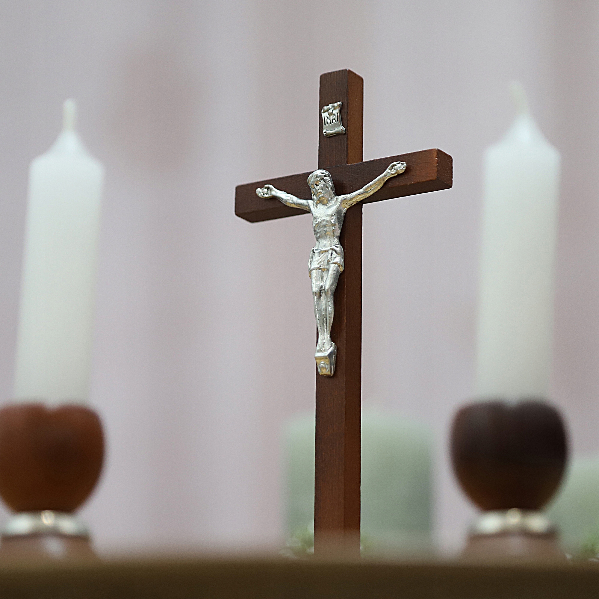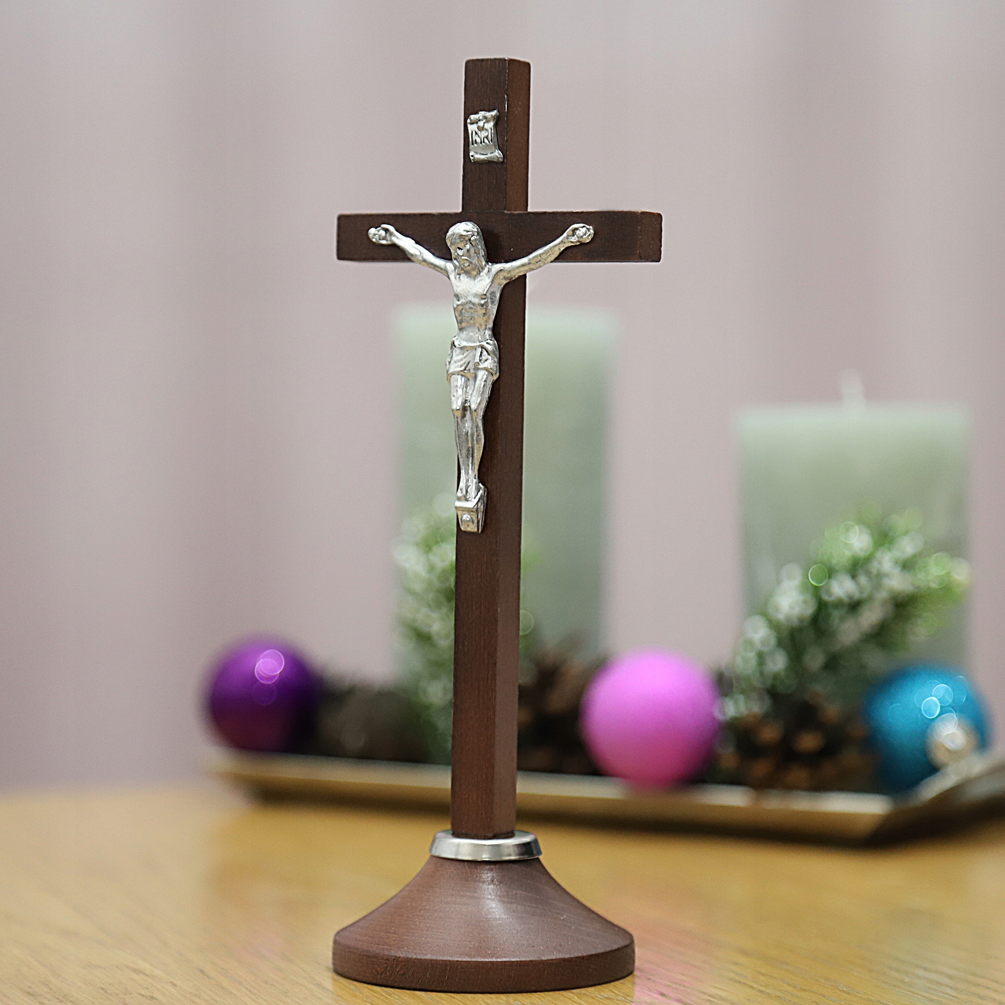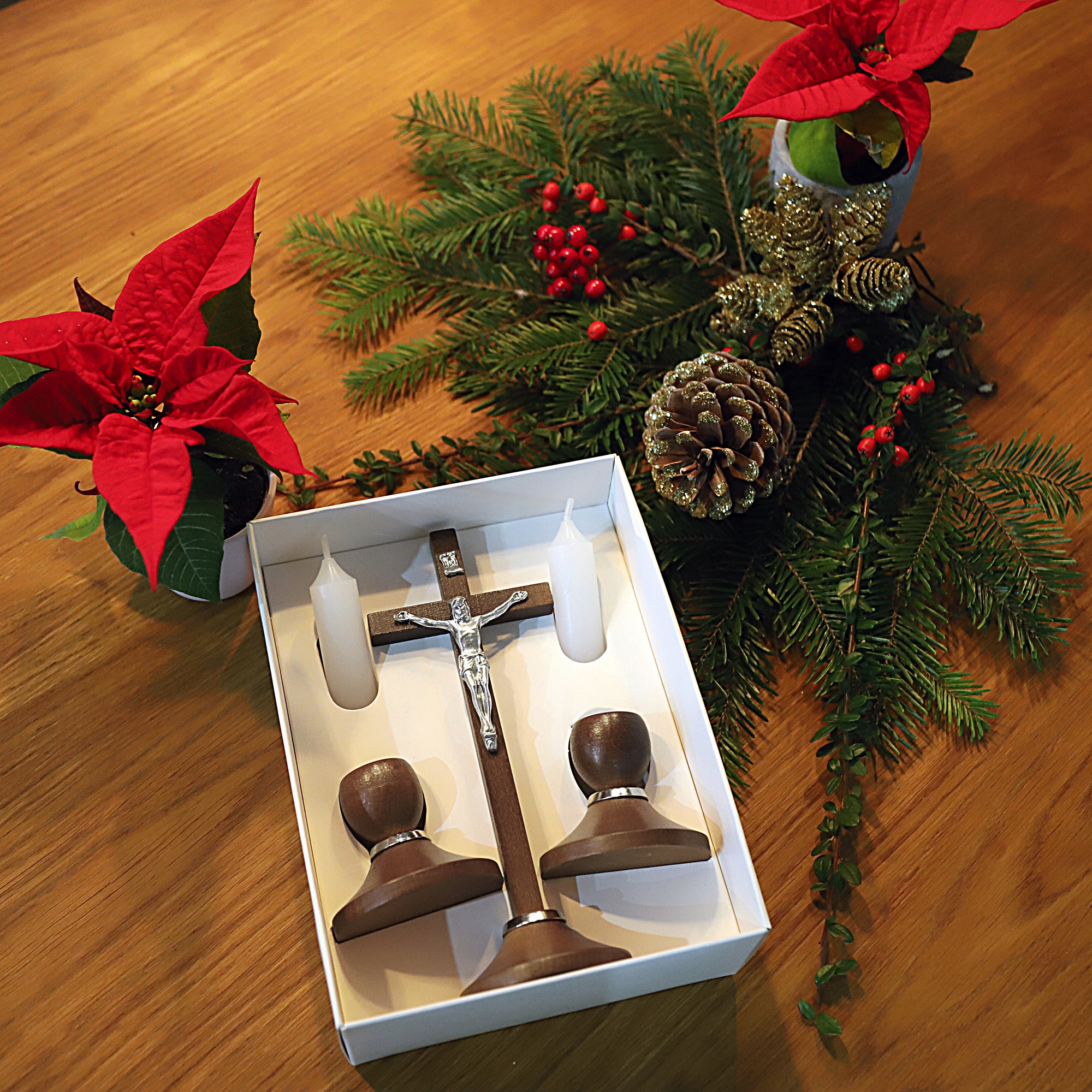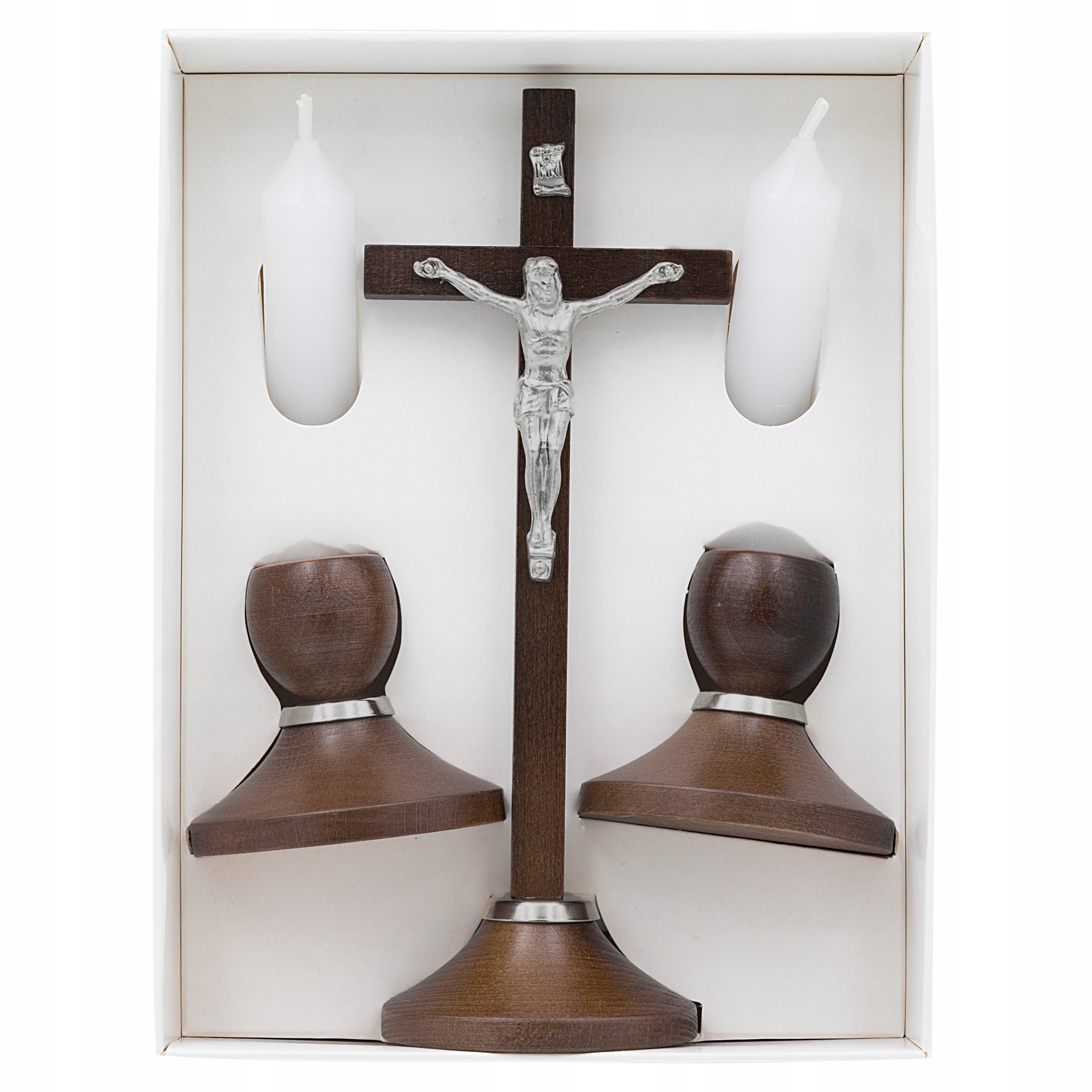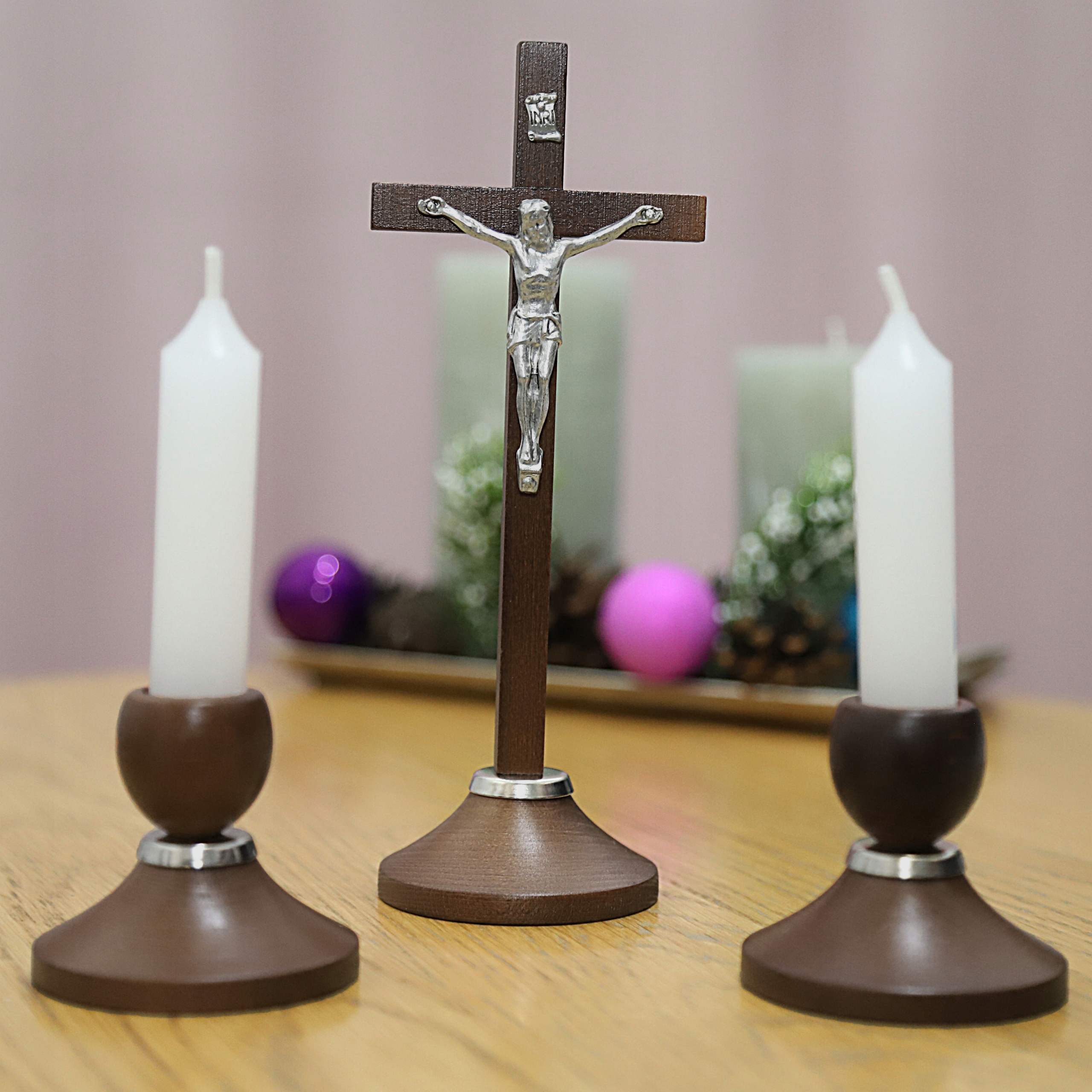 ELEGANCKI ZESTAW KOLĘDOWY Brązowe Drewno Krzyż Świecznikx2 Zestaw Adwentowy