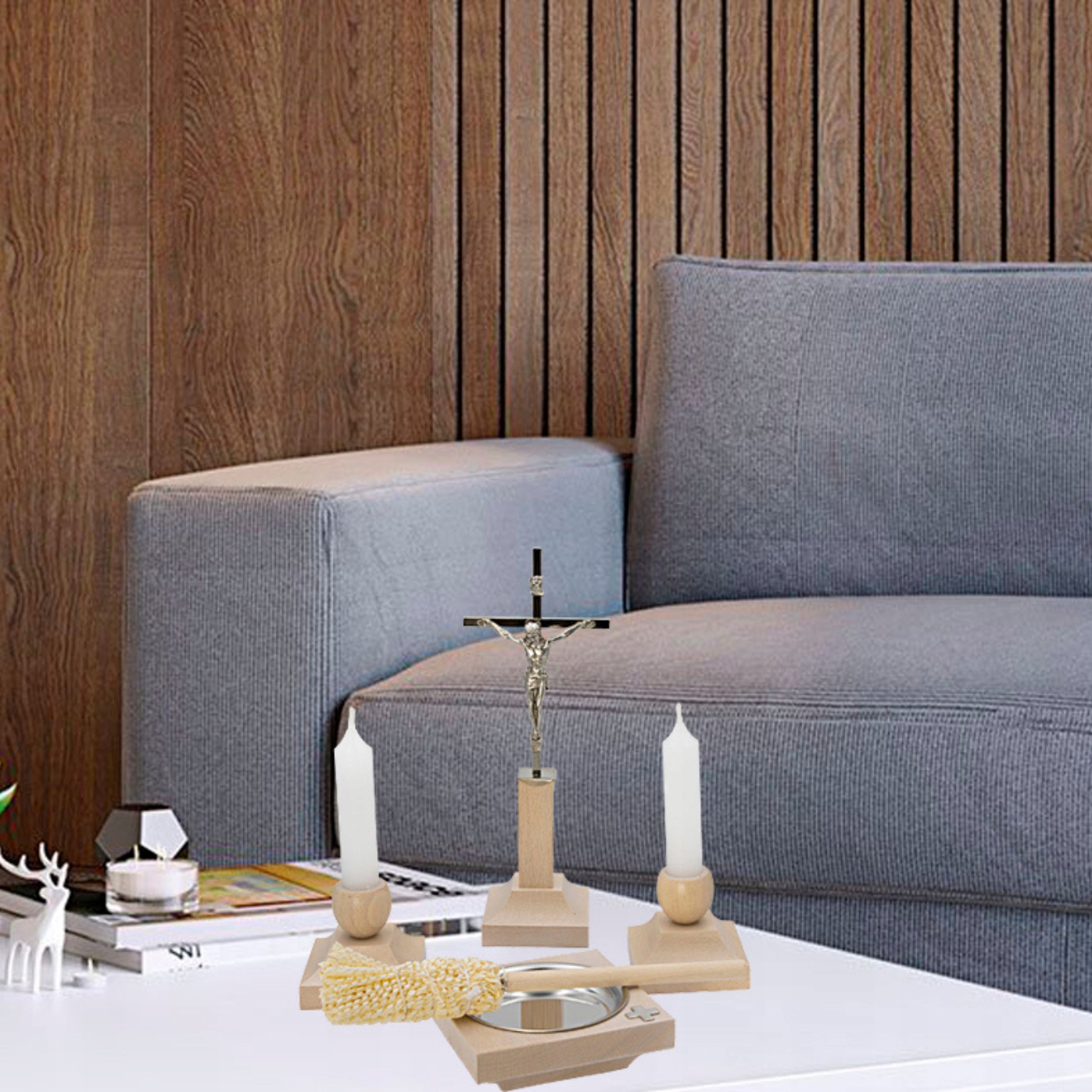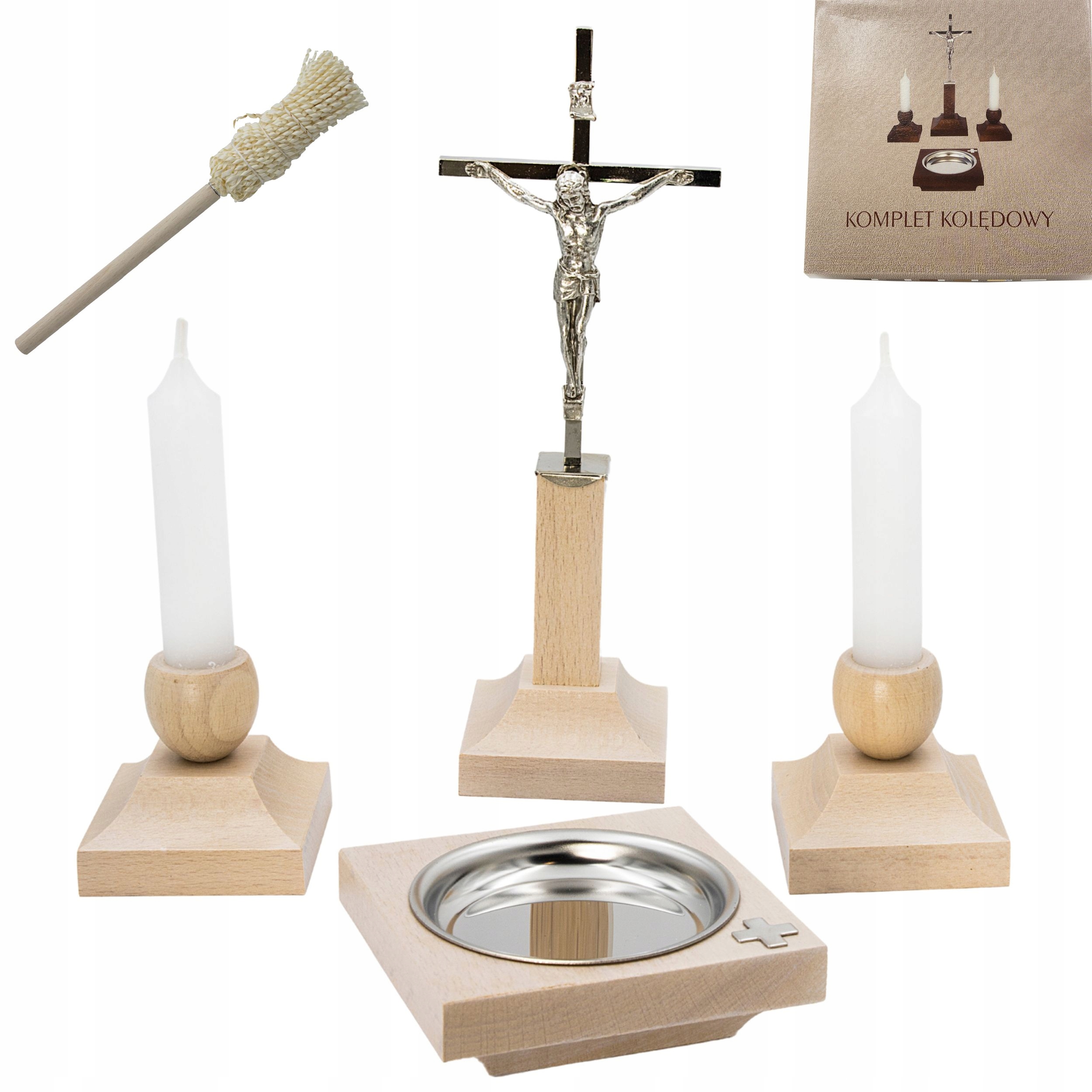 ELEGANCKI ZESTAW KOLĘDOWY Z IKONĄ Krzyż z Jezusem Jasne Drewno Kropidło