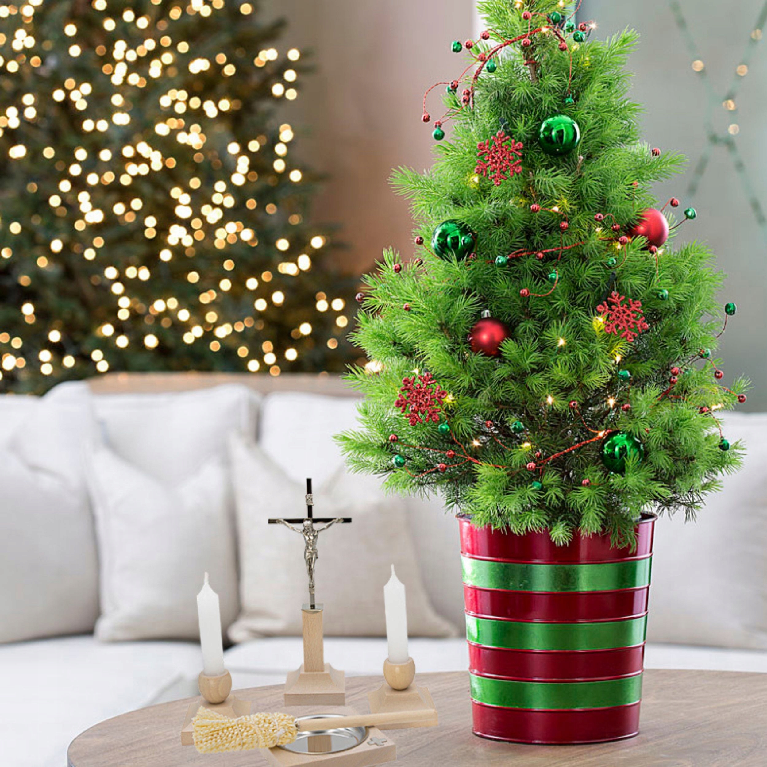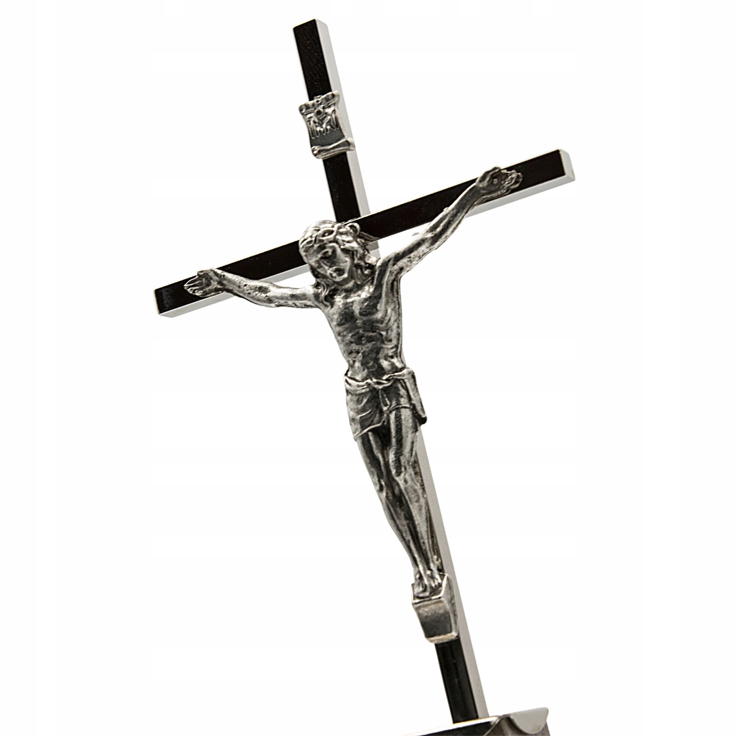 ELEGANCKI ZESTAW KOLĘDOWY Z IKONĄ Krzyż z Jezusem Jasne Drewno Kropidło