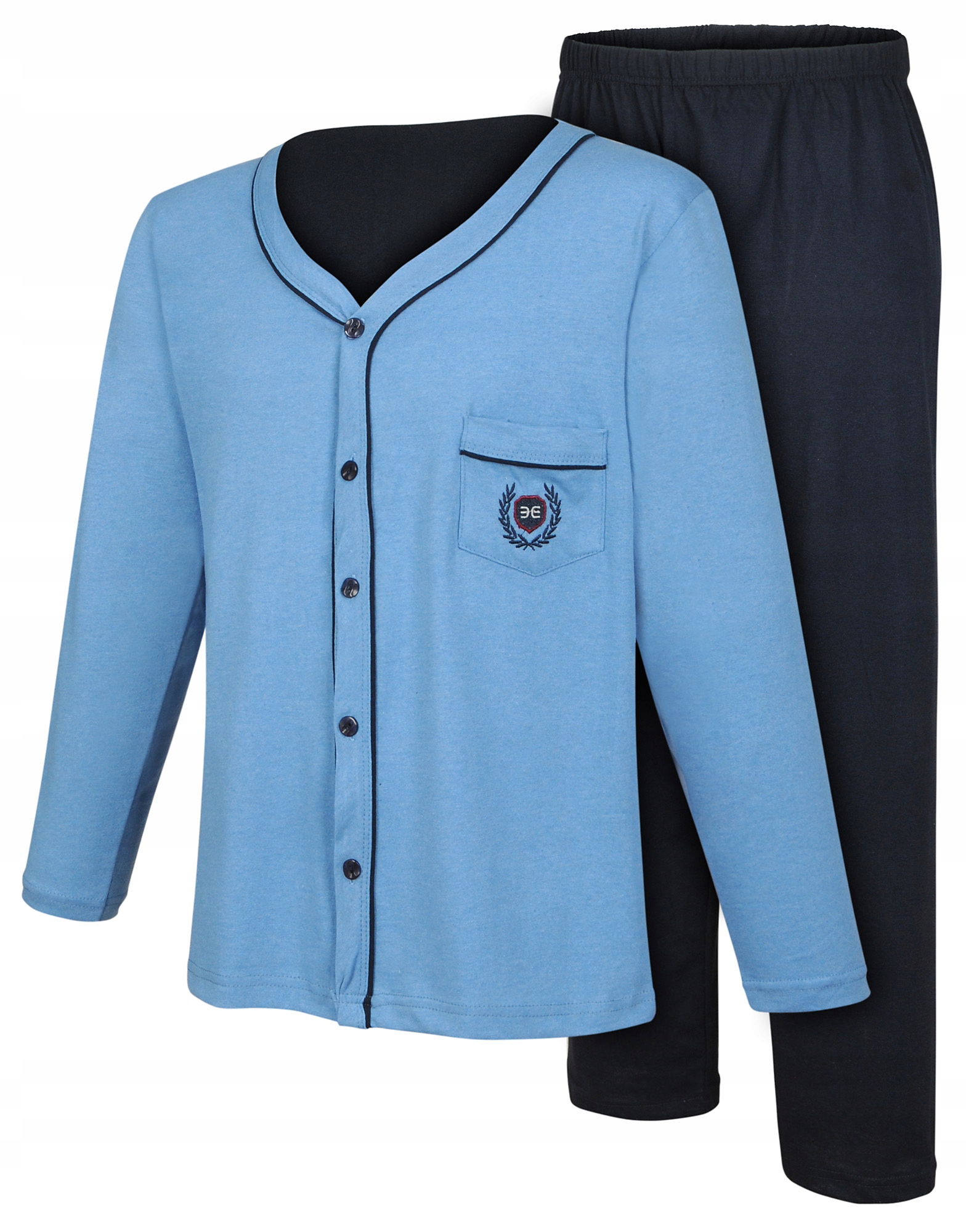 ElegantePrecio piżama męska ROZPINANA NIEBIESKA długi rękaw