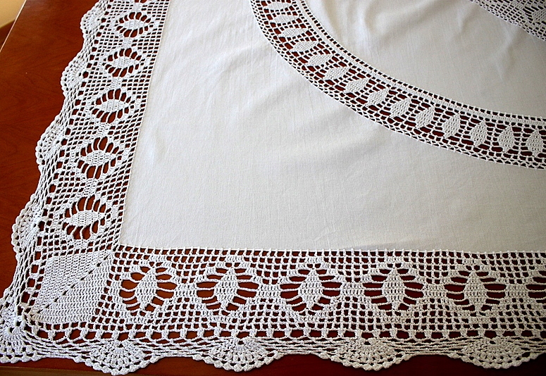 Елегантна біла, прямокутна скатертина з гачком мереживом 130/170