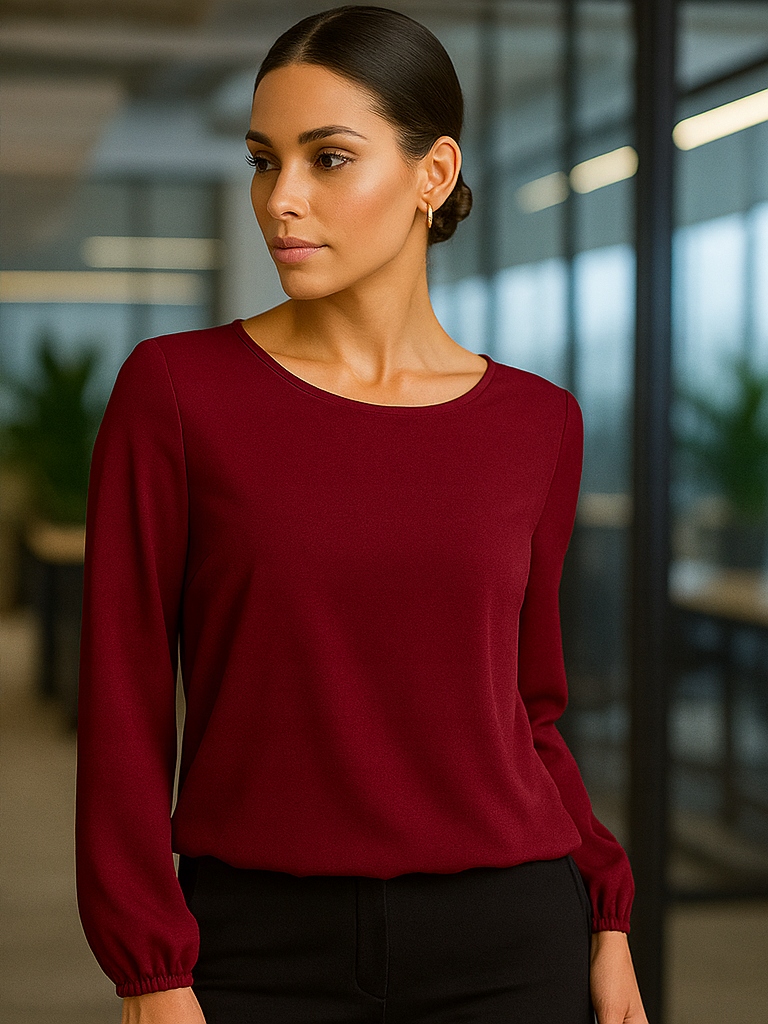 ЕЛЕГАНТНА БЛУЗКА BURROW НА ГУМЦІ, РЕБРИЧКА ВНИЗУ, ДОВГИЙ РУКАВ 46