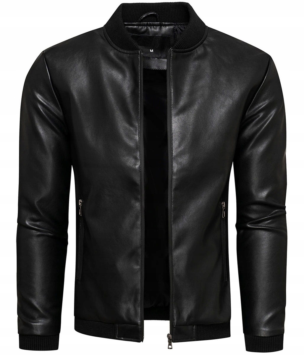 Чорний чоловічий піджак на підставці -комірі. Він має покритий повзунок по всій довжині. Куртка була обладнана підкладкою, що робить його ідеальною курткою для весни та осені. У ньому є поті -тофти на талії та рукавах, завдяки якому він прилягає приємно і має акуратний розріз. Збоку ви знайдете практичні - нарізані кишені, також всередині - один ковзав. Куртка виготовлена з екологічного матеріалу з 100% поліуретаном.