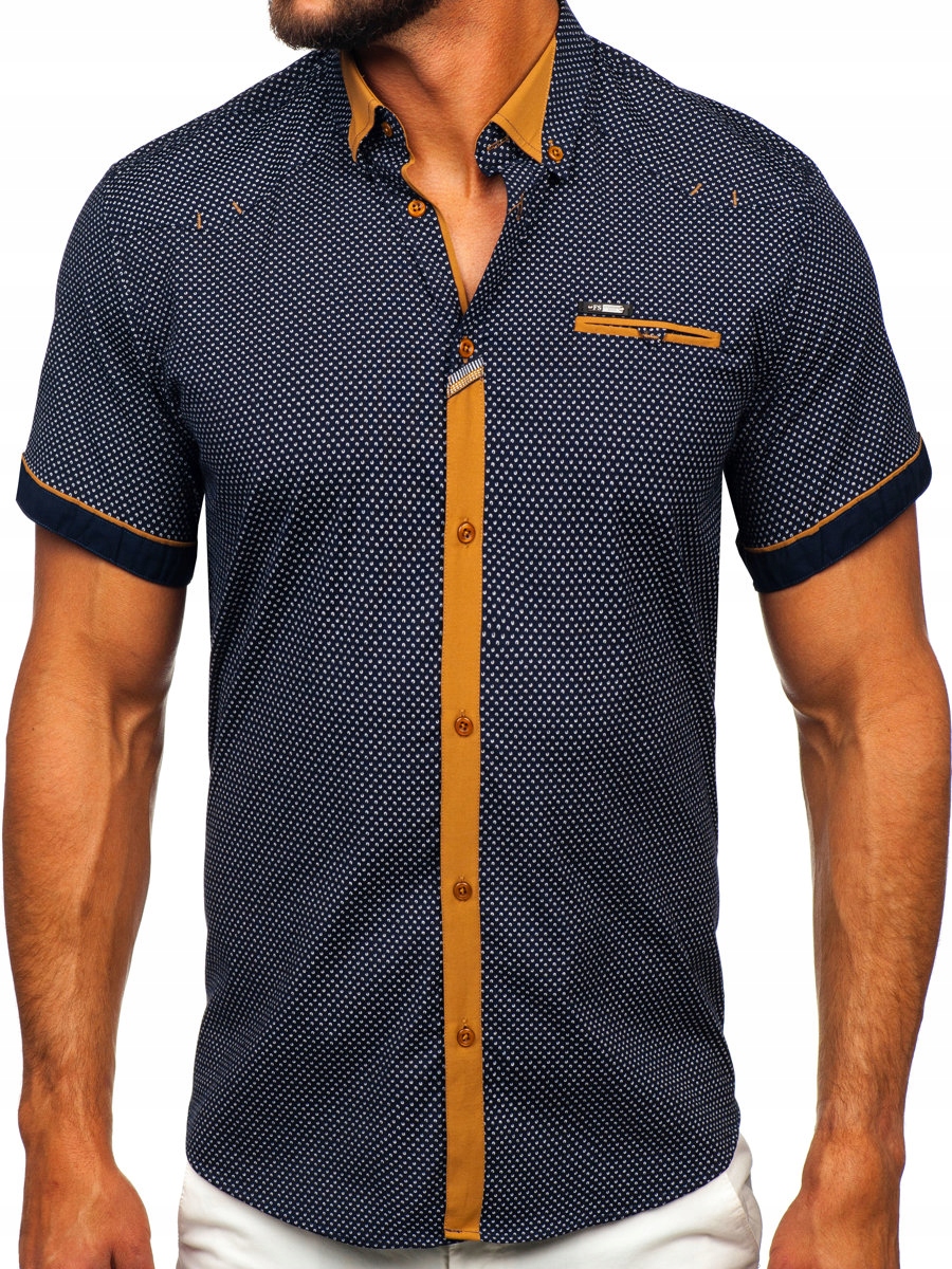Темно-синя елегантна чоловіча сорочка з коротким рукавом Bolf 19616, розмір M
