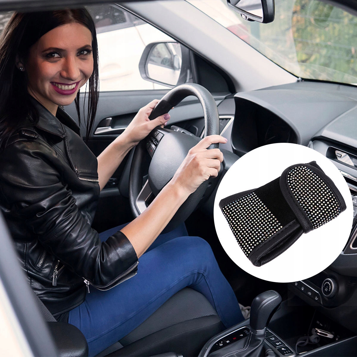 ЕЛЕГАНТНА ЧОРНА НАКЛАДКА ВАЖЕЛЯ РУЧНОГО ГАЛЬМА/НАКЛАДКА З КРИСТАЛАМИ
