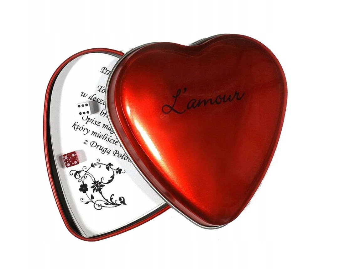 Ця чудова металева скринька зберігає в собі магію виконаних бажань. Романтична гра L'amour дозволить кожній парі, незалежно від тривалості відносин і їх формального статусу, оживити своє життя. Гра ідеально зближує партнерів і, безумовно, може стати фактором спільного проведення часу. Ідеально підходить для коханої людини, як доказ кохання та як вияв бажання розвивати глибші стосунки. Гра передбачає запис бажання, яке переможець зможе виконати. Слідкуйте за вмістом витягнутих карток і збирайте сердечка, тому що виграє той, хто першим збере їх чотирнадцять.