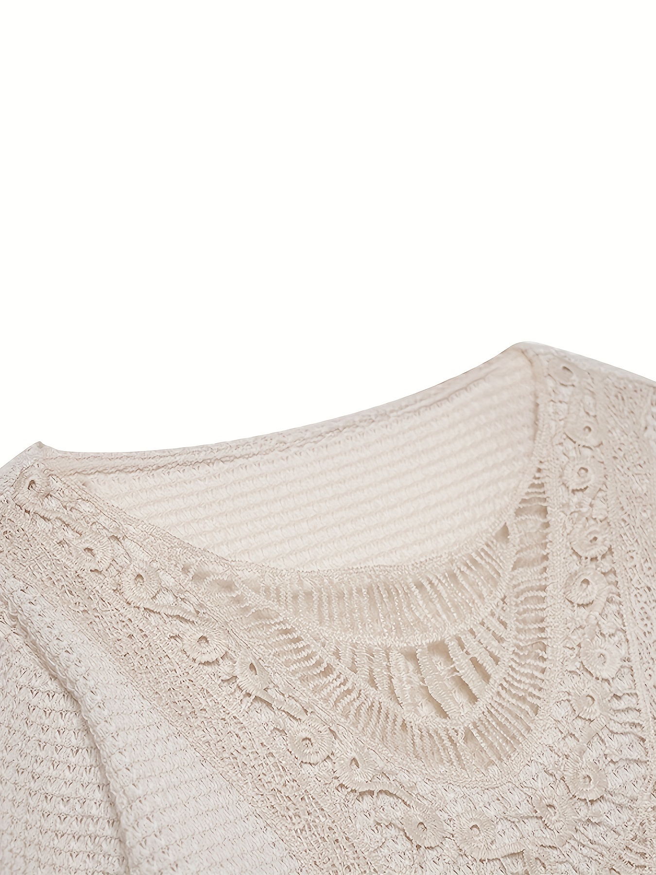Ця жіноча блузка - це квінтесенція делікатності та жіночої благодаті. Його мереживна тканина з відкритою роботою надає їй легкість і тонкість, створюючи ефективний візерунок, який вражає кожною деталлю.