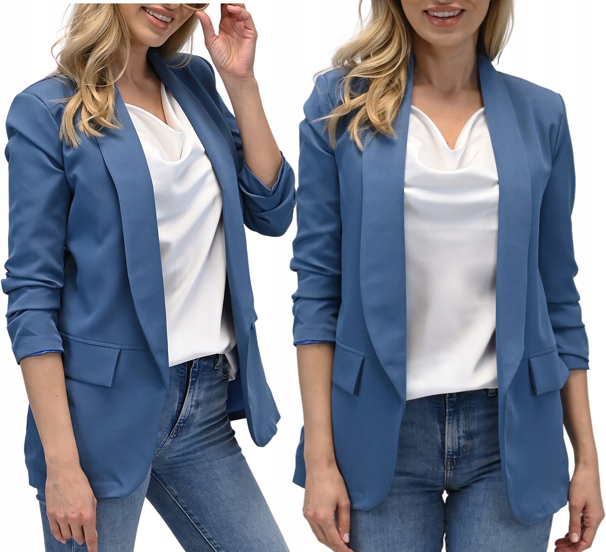 Ідеально доповнить наряд на роботу, в університет або вечірній вихід. Драпіровані рукава довжиною 3/4 додають оригінальний характер. Імітація кишень з боків з ефектними клапанами прикрашає куртку. Вільного крою, з підкладкою та м’якими підплечниками.