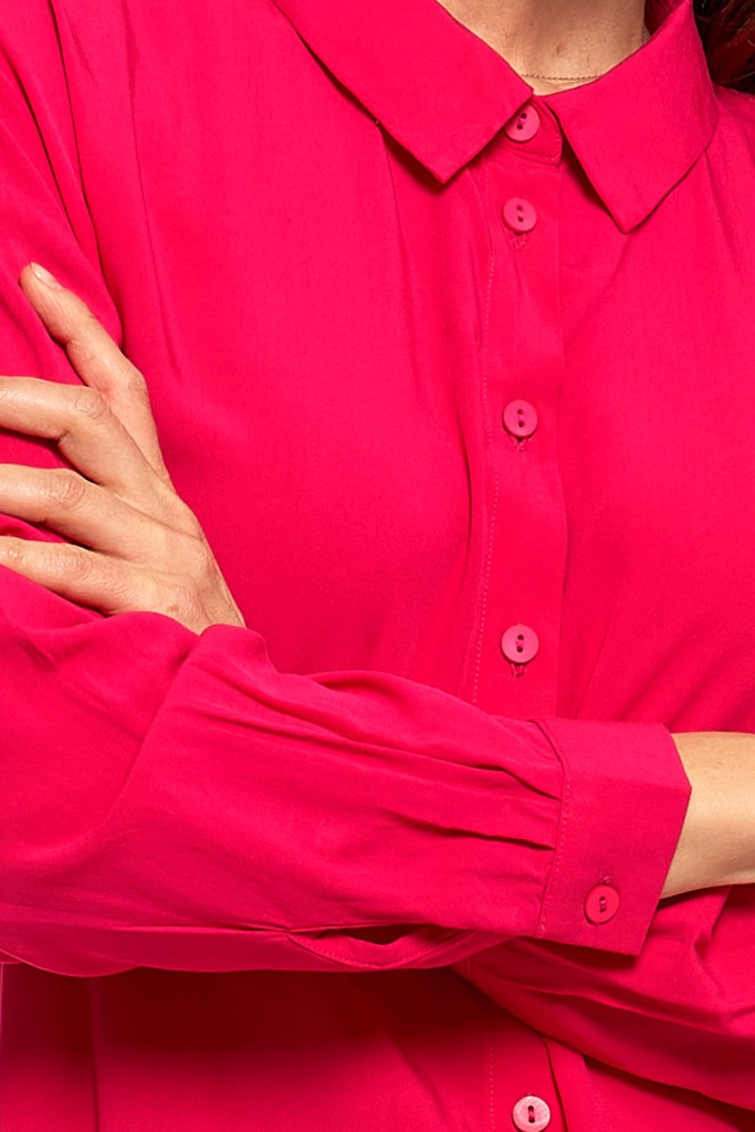 Ця жіноча сорочка насиченого кольору фуксії поєднує в собі класику з сучасним акцентом завдяки асиметричній спинці, яка надає їй унікального характеру. Застібається на ґудзики, з елегантним коміром і манжетами ідеально підійде як для офіційного, так і для повсякденного стилю. Легкий, повітряний матеріал забезпечує комфорт протягом усього дня, а виразний колір фуксії додає енергії та оживляє будь-який гардероб.
