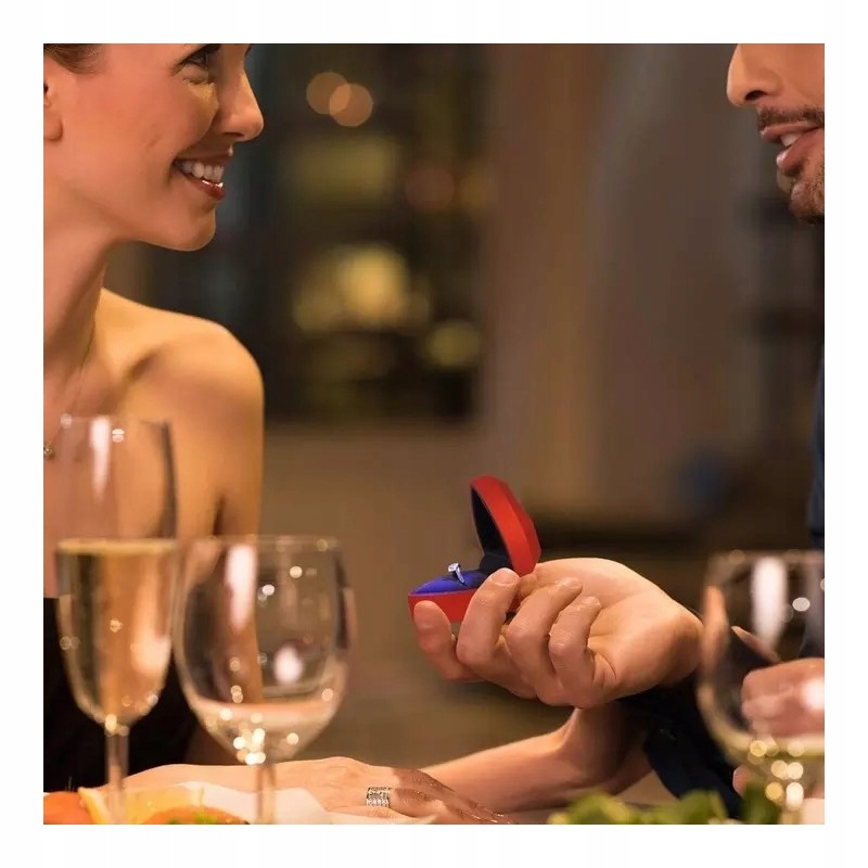 Елегантна скринька для каблучок у формі серця. Якісна відкривна коробка зі світлодіодним підсвічуванням - вона автоматично загоряється при відкритті кришки. Зовні 100% пластик, всередині чорний оксамит. Красива скринька у формі незмінного серця — ідеальна для особливих випадків — заручин, ювілею, весілля.