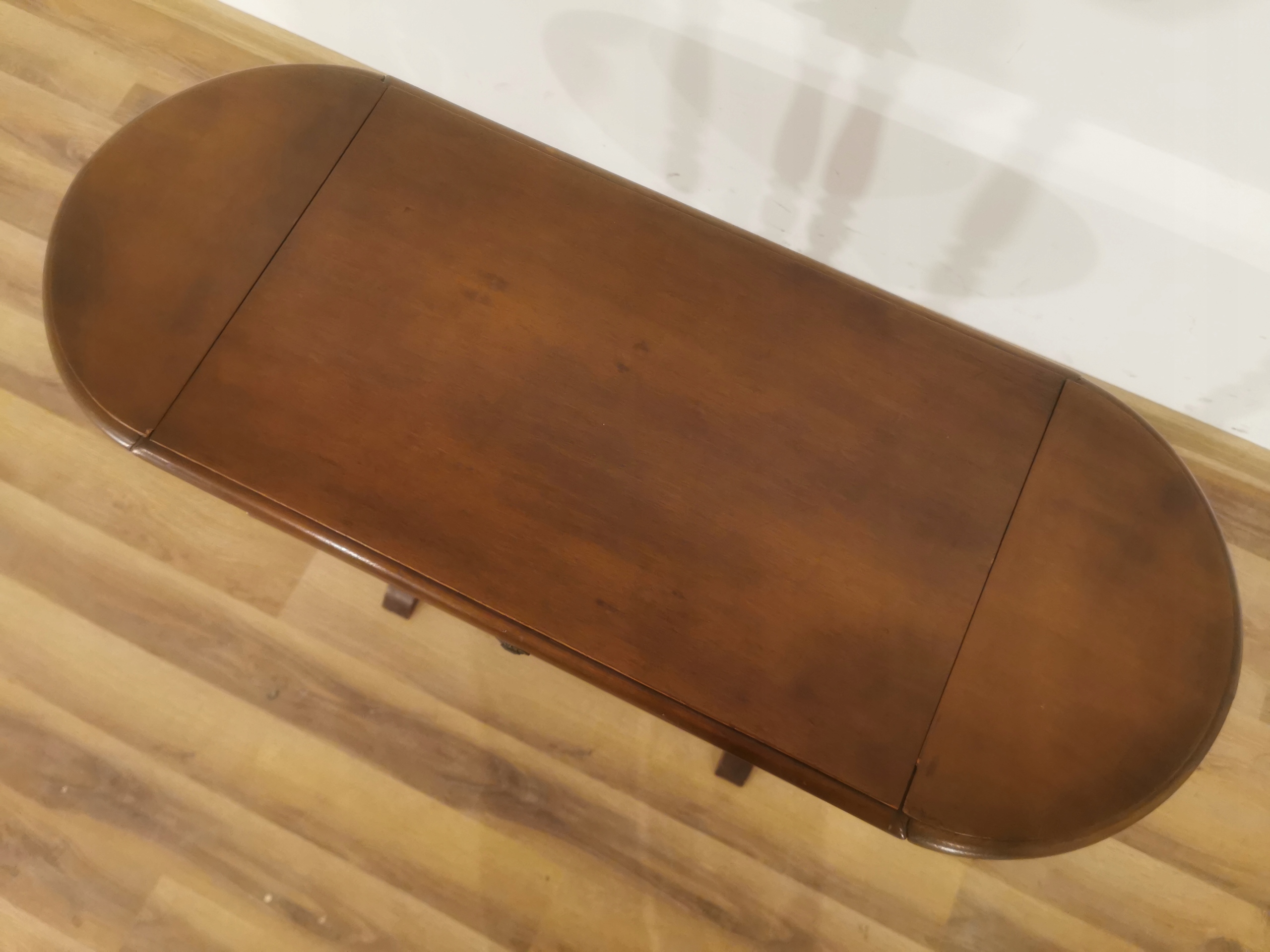 Лавка має прямокутний верх і напівкруглі допоміжні стільниці з боків.