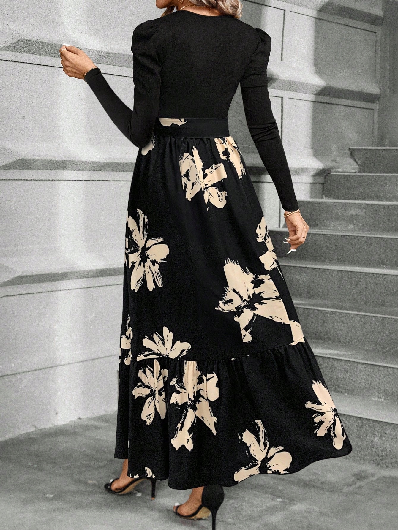 ЕЛЕГАНТНА ОСІННЯ ВІЛЬНА СУКНЯ З ДОВГИМИ РУКАВАМИ, МАКСІ ВЗІЗОРКИ