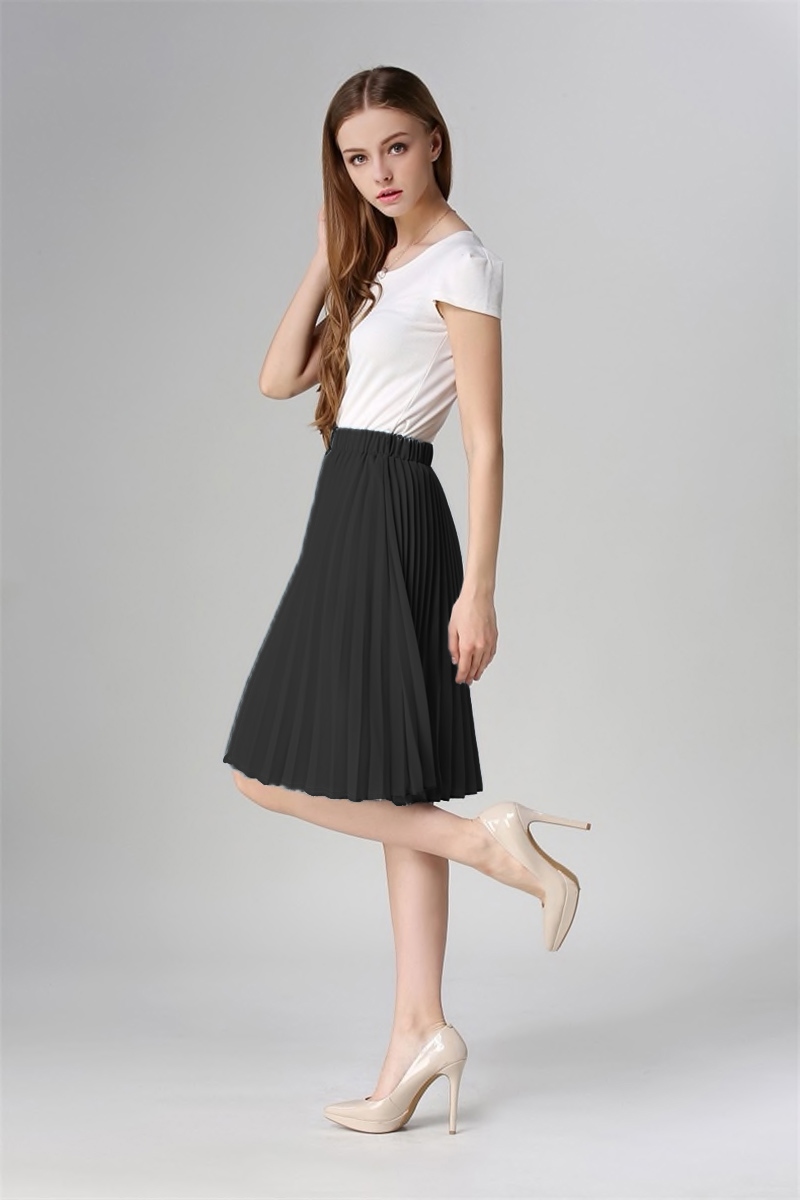 Елегантна плісирована спідниця міді спідниця з еластичними ретро кольорими s/m