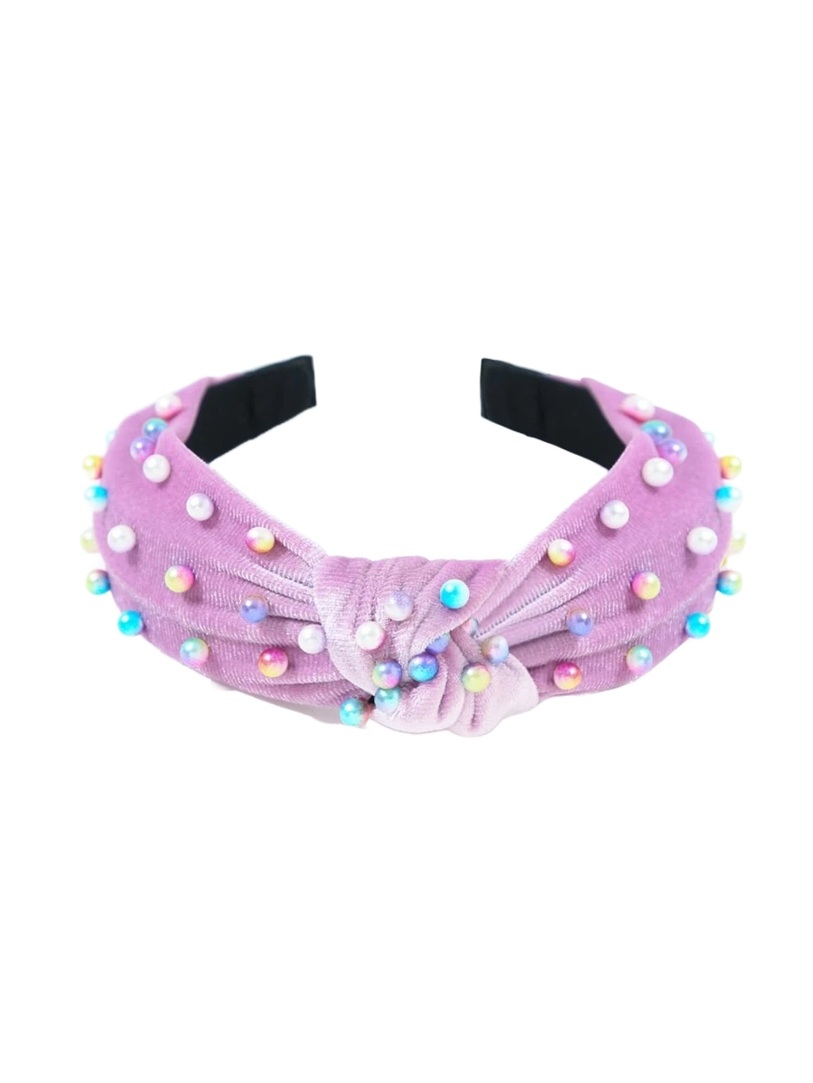 Велюрова пов'язка з перлами - фіолетова