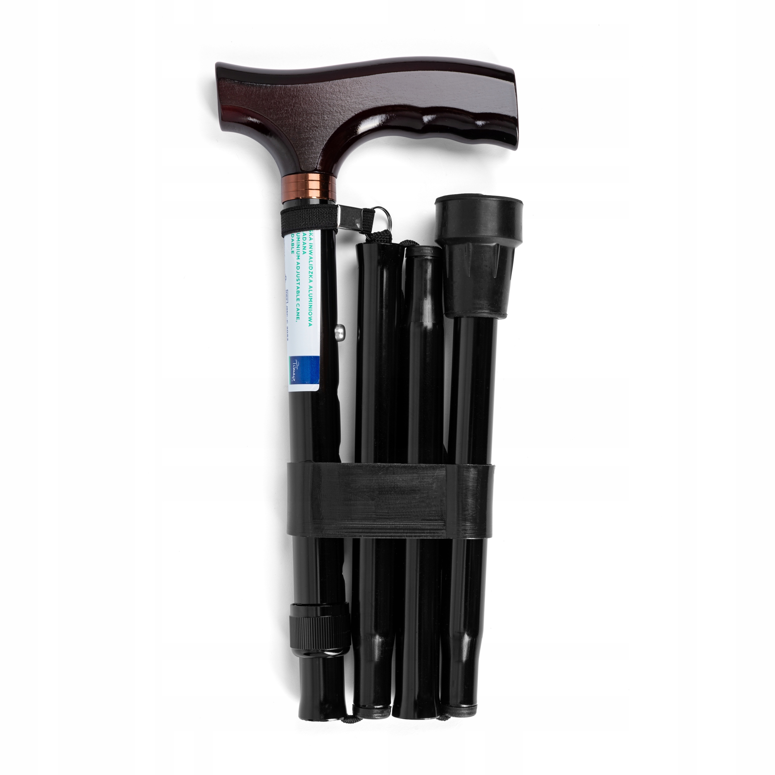 Елегантна складна тростина з високоякісного лакованого дерева та алюмінієвого сплаву, регульована висота від 787 мм до 889 мм. Тростина складається з чотирьох частин, скріплених разом гнучкою гумою, тому неможливо втратити будь-який компонент.