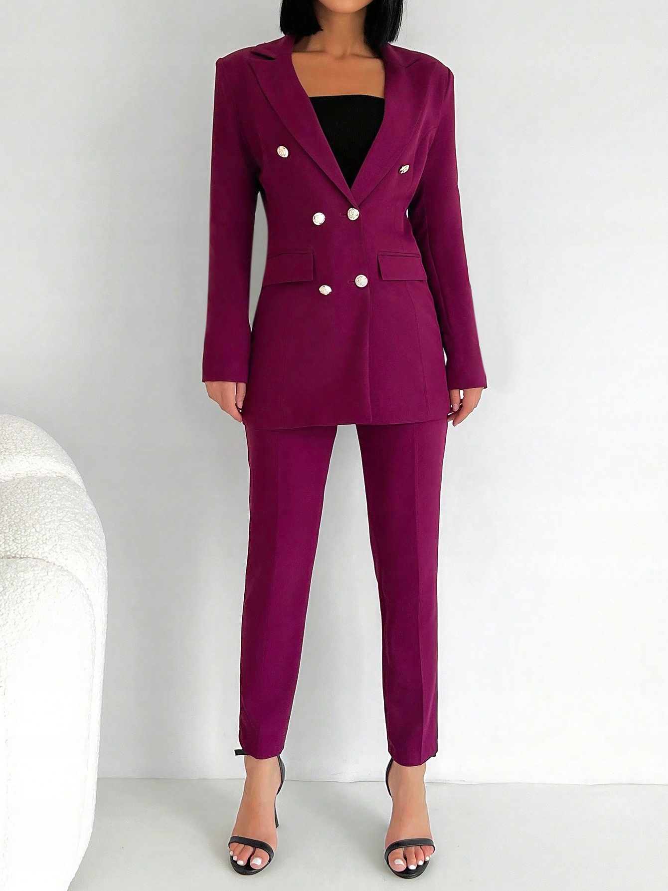 Ідеально підходить як ключовий елемент гардеробу, підкреслюючи впевненість у собі та сучасний смак жінки, яка його носить.