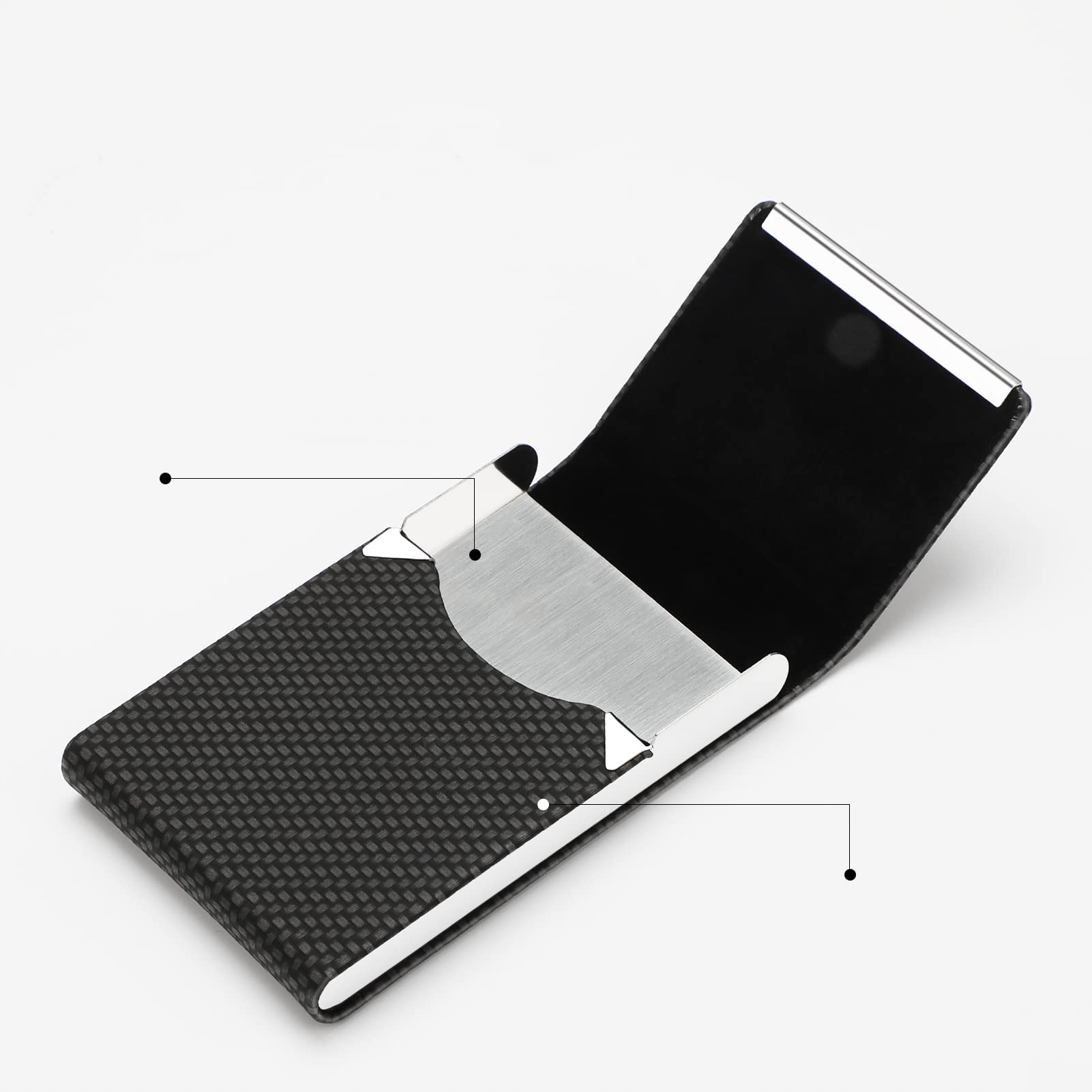 ультра тонкі та компактні: утримуйте близько 15-25 візитних карток (залежно від картки товщини) або 4-8 кредитних карток. Досить мінімалістичний, що він ідеально вписується в невелику кишеню, портфель, гаманець.