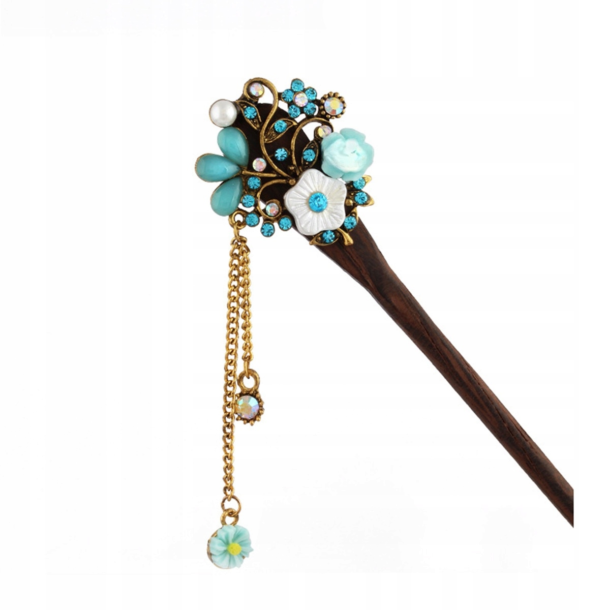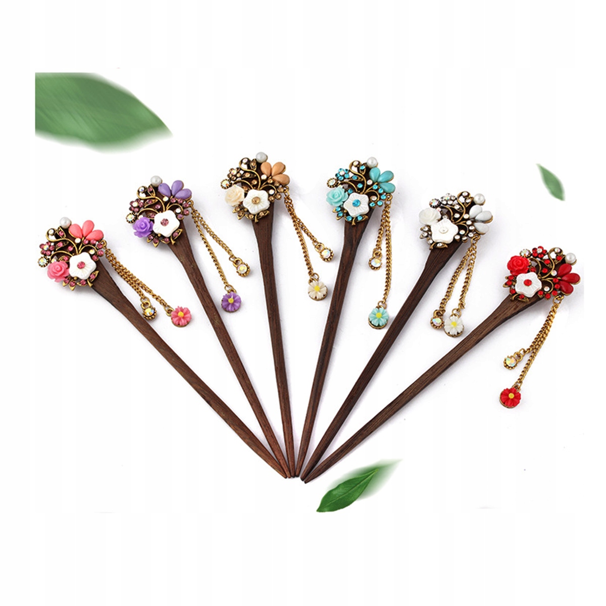 ✅1 * Стильна дерев’яна шпилька для волосся Вінтажна бронзова шпилька для волосся Традиційна заколка з квітами для жіночого укладання волосся (кольорове)