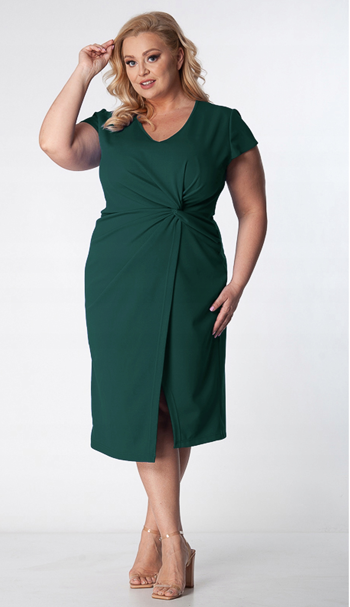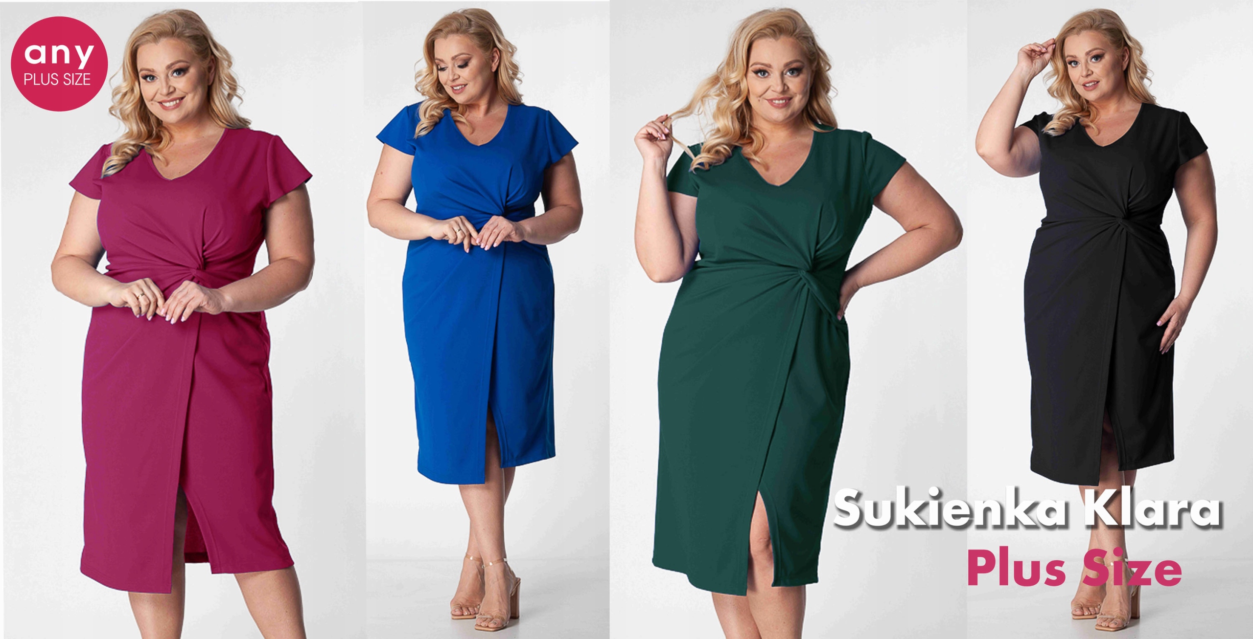 Сукня Клара - це пропозиція для жінок, які хочуть прикрити область талії та животик. Він має вузол цікавого дизайну, який розширюється на талії та тягнеться до грудей. Вузол закриває і коригує ці ділянки силуету. Крім того, сукня має V-подібний виріз, який звужує шию. Заслуговує на увагу і цікавий виріз, який трохи відкриває ноги. Ми зробили його з елегантного, пружного матеріалу. У ній ви почуватиметеся комфортно та елегантно. Сукня чудово підійде під час різноманітних урочистостей, весіль, хрестин чи днів народжень у найближчому колі. Кожна жінка XXL почуватиметься в ньому надзвичайно красивою.