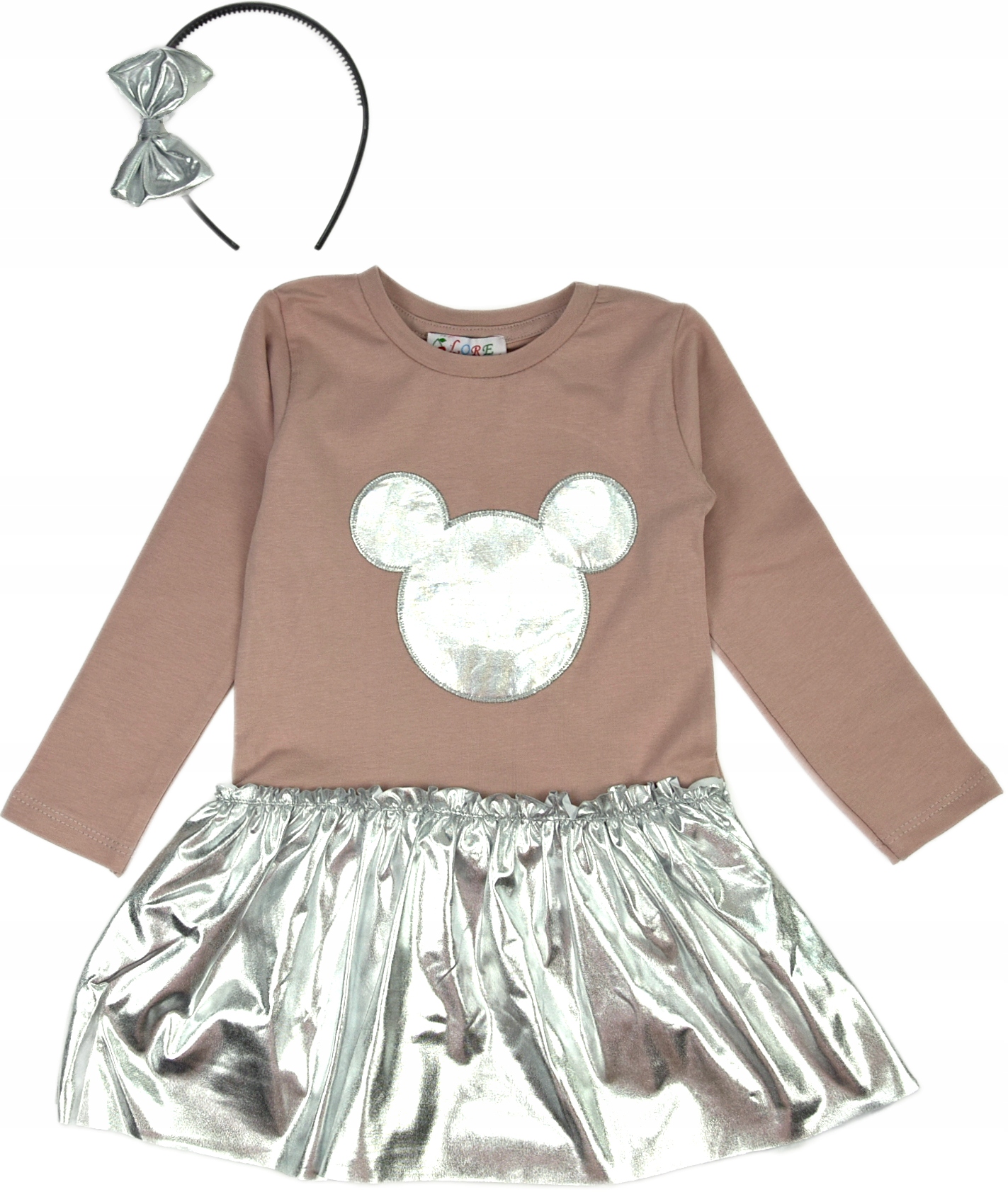 Ошатне плаття для дівчинки. До сукні додається пов’язка в тон із бантом. Однотонний верх з сердечком, мерехтливий низ.