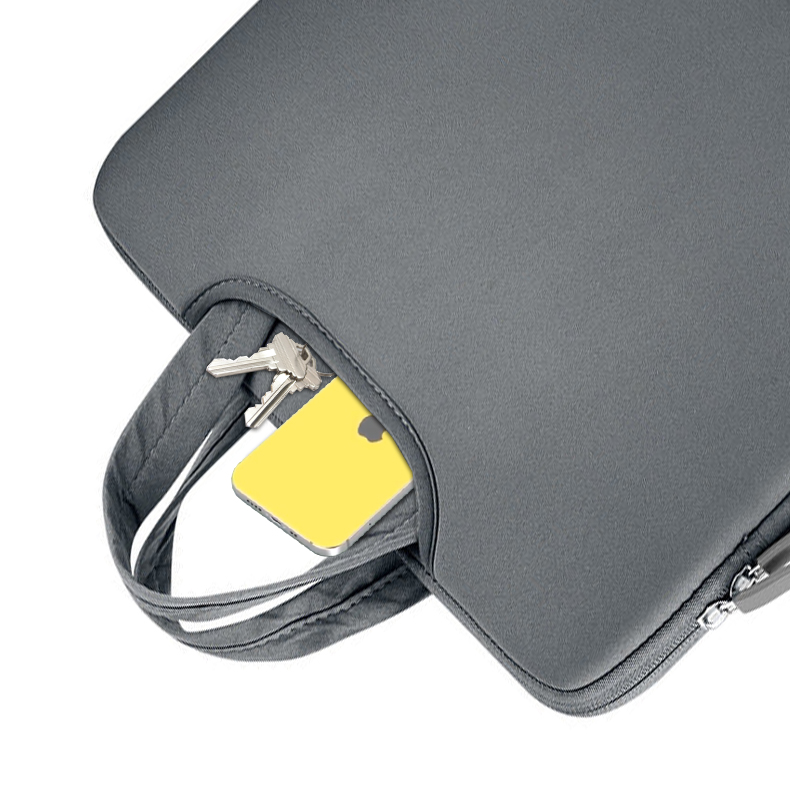 Завдяки двом додатковим кишеням у сумку можна помістити не лише ноутбук, а й зарядний пристрій, телефон, ключі чи платіжні картки. Обидві кишені закриваються за допомогою липучок і дозволяють приховати ручки сумки, коли ви не хочете їх одягати.