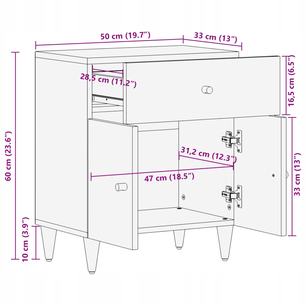 Елегантна тумбочка з масиву мангового дерева, ручна різьба, чорна, 50x33x60 см