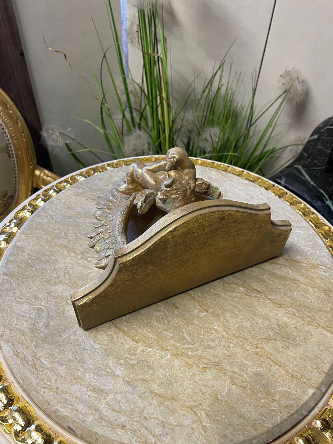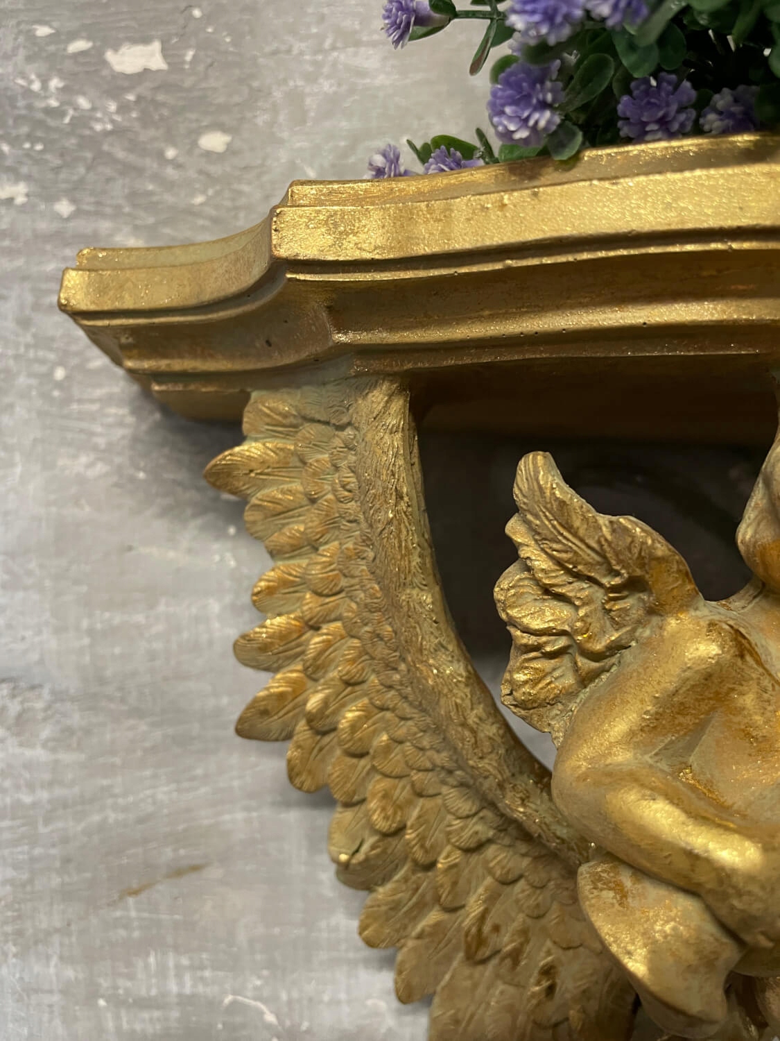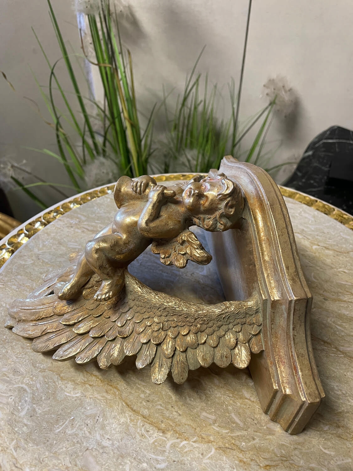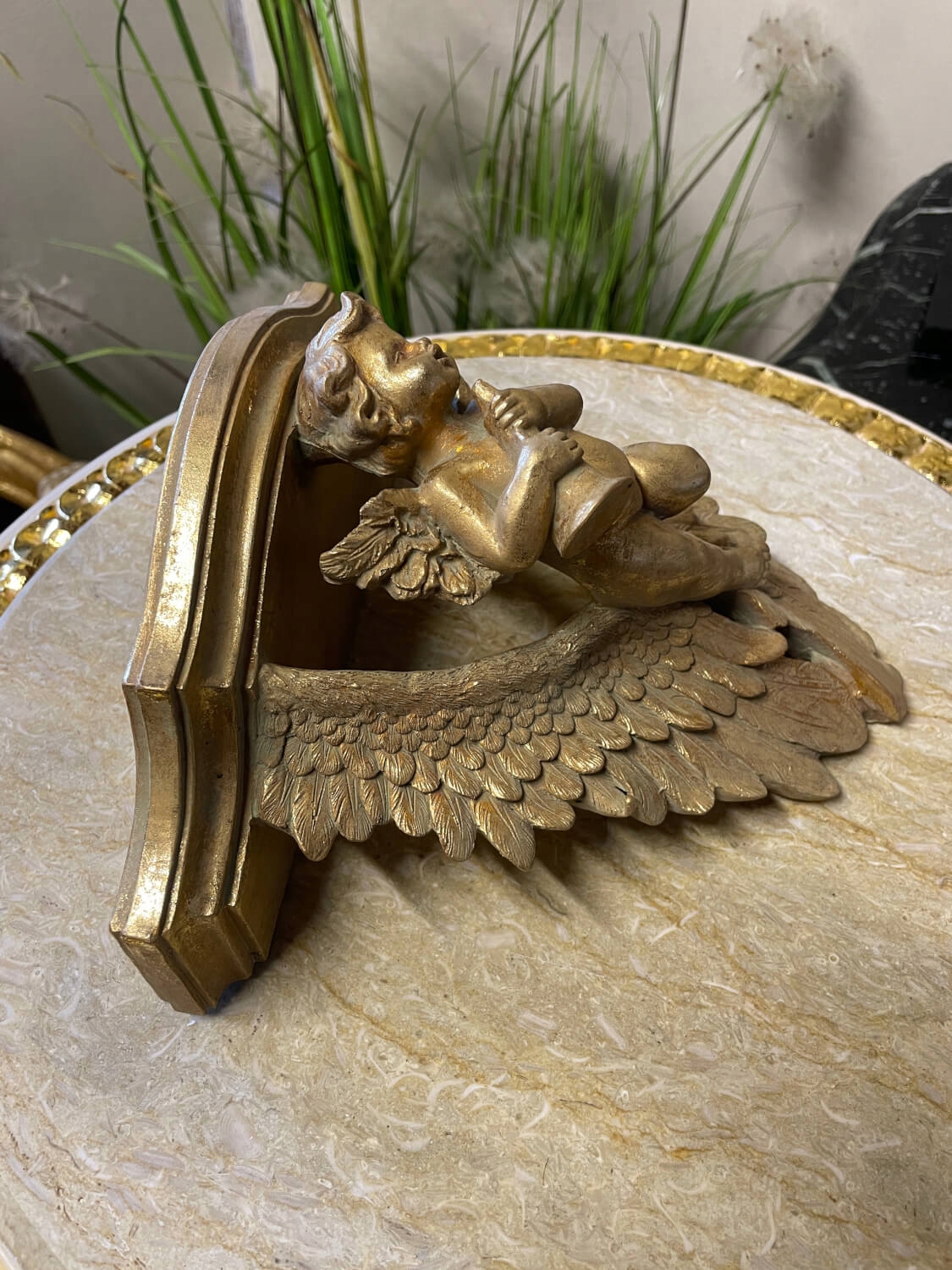 Елегантна золота настінна полиця з фігуркою ангела – прикраса в стилі бароко