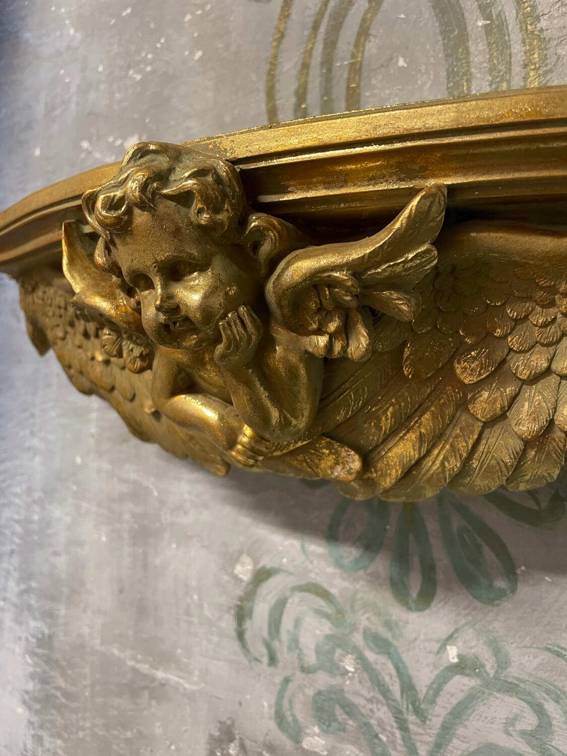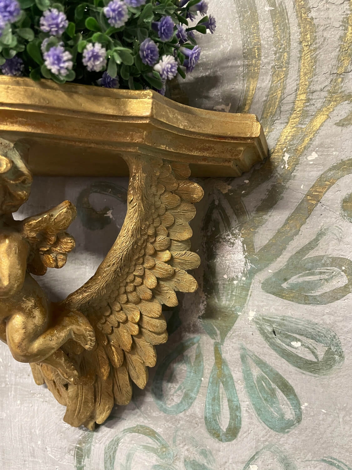 Елегантна золота настінна полиця з фігуркою ангела в стилі бароко