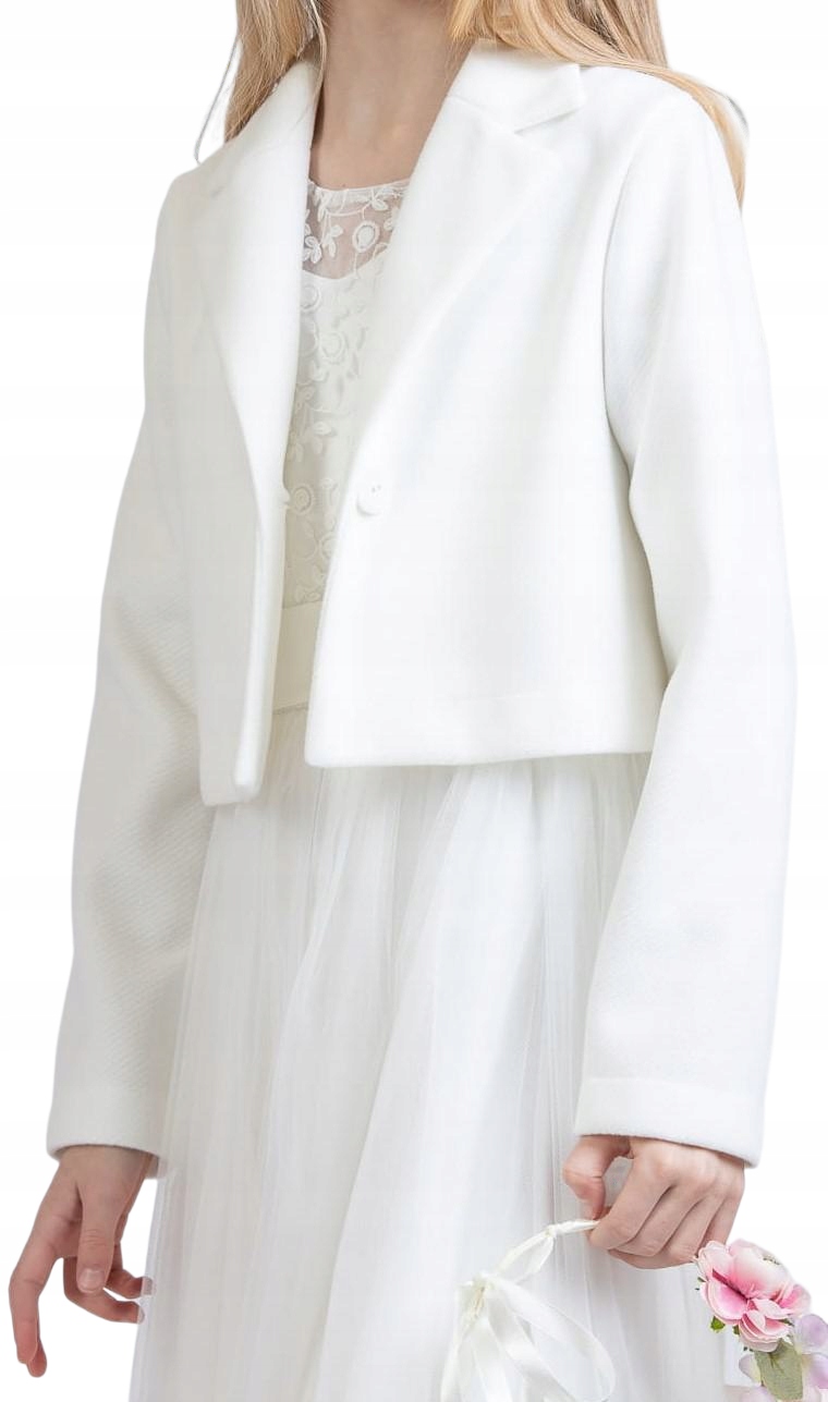 Елегантне болеро для дівчинки з колекції Premium - це майстерне поєднання тонкого дизайну та високої якості виконання. Він чудово підійде як доповнення до елегантної сукні на особливих подіях. Польське виробництво гарантує не лише дбайливе ставлення до деталей, а й увагу до кожного елементу пошиття. Болеро кольору екрю — ідеальна пропозиція для маленьких леді, які хочуть виглядати стильно та елегантно.