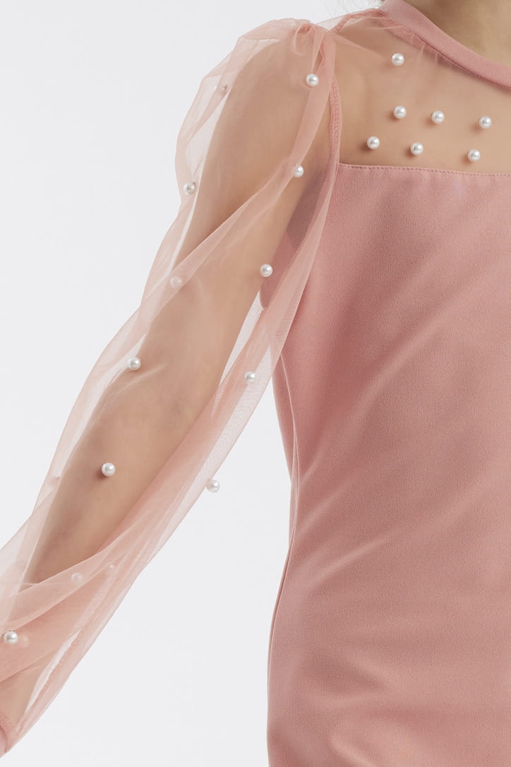 Завдяки ретельній роботі дизайнерів, кожна деталь цієї сукні випромінює стильну благодать. пухнасті рукава Дайте делікатесу, а елегантне декольте з красивими перлами змушує кожну молоду леді відчувати себе особливим і сповненим стилю. Це ідеальне творіння для м'ячів, шкільних академій чи урочистих вечірок, де кожна дівчина хоче представити себе ідеально і на уроці.