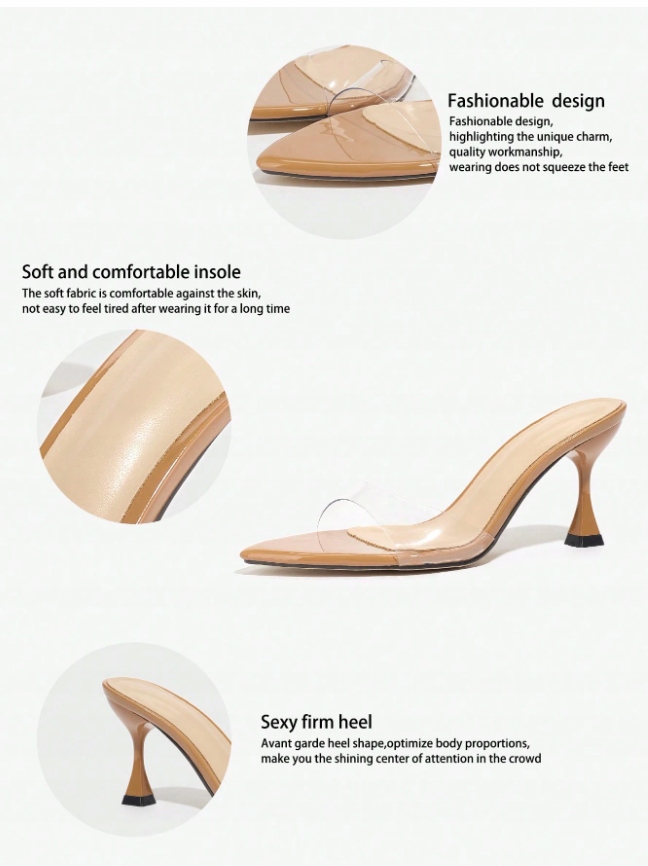 ЕЛЕГАНТНІ ТАПОЧКИ SHEIN НА ПРОЗОРОМУ П'ЯТКУ, розмір 39 W608105