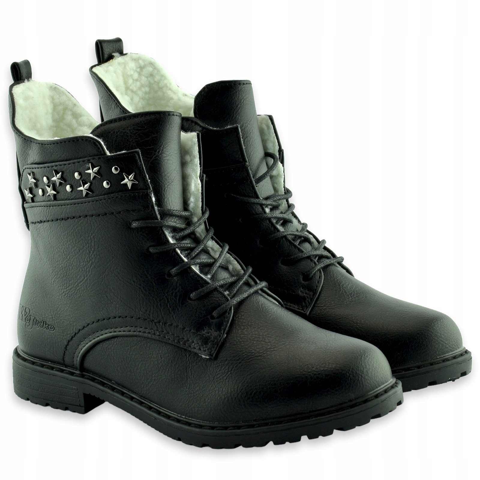 Чорні туфлі класичної форми та крою, утеплені білою овчиною. Застібається на бічну блискавку.