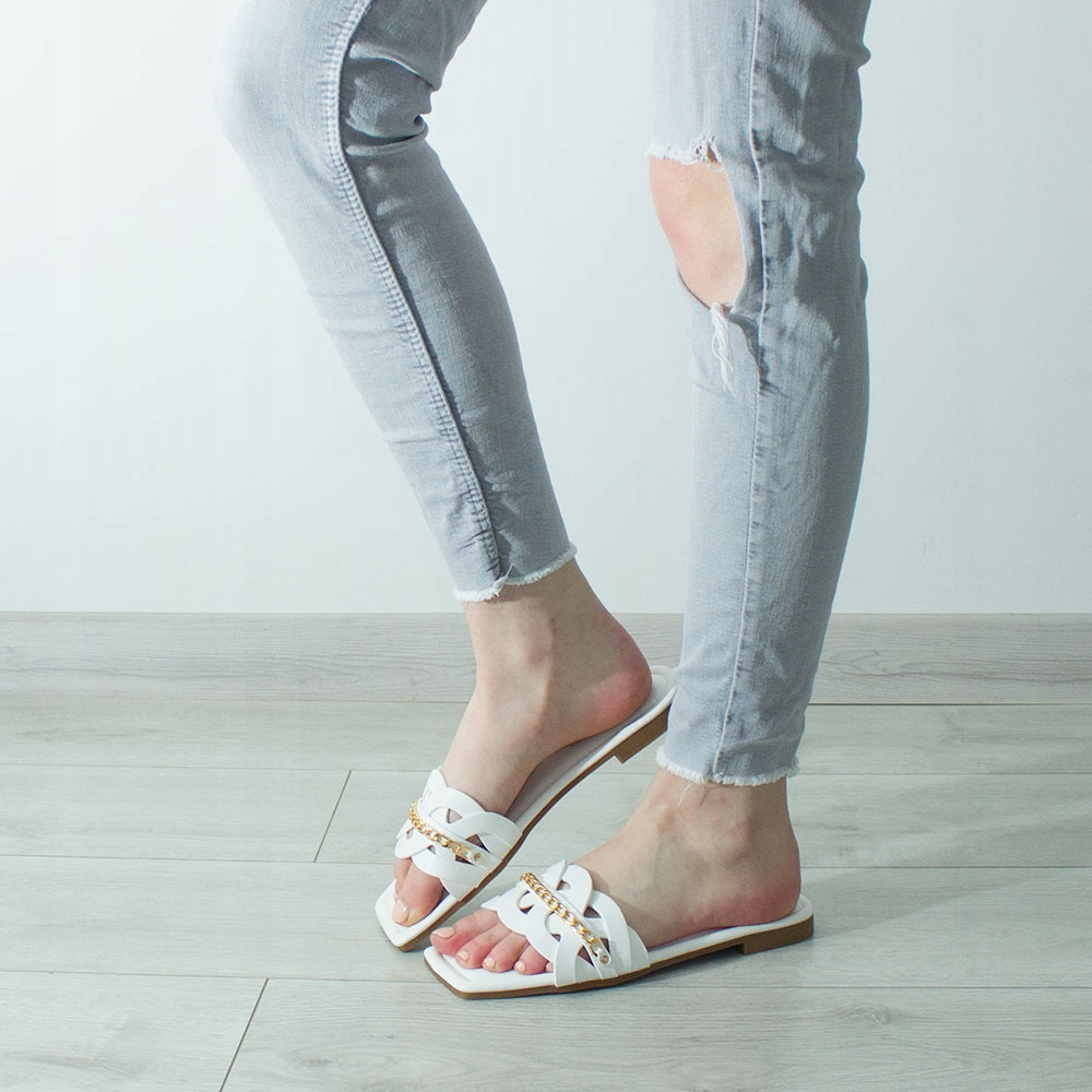 ЕЛЕГАНТНІ БІЛІ ТАПОЧКИ ДЛЯ ЖІНОЧИХ ЛІТНІХ ЗОЛОТИХ ДЕКОРАЦІЙ