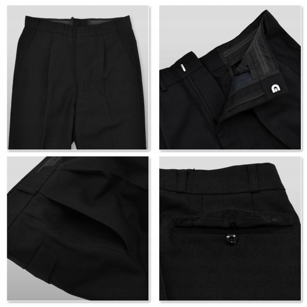 Штани застібаються на гачок і блискавку і мають загалом 3 кишені. Дві класичні бічні кишені і одна, що застібається на гудзики ззаду штанів. Вони мають шлевки для ременя, що дозволяє носити ремінь шириною не більше 3 см.