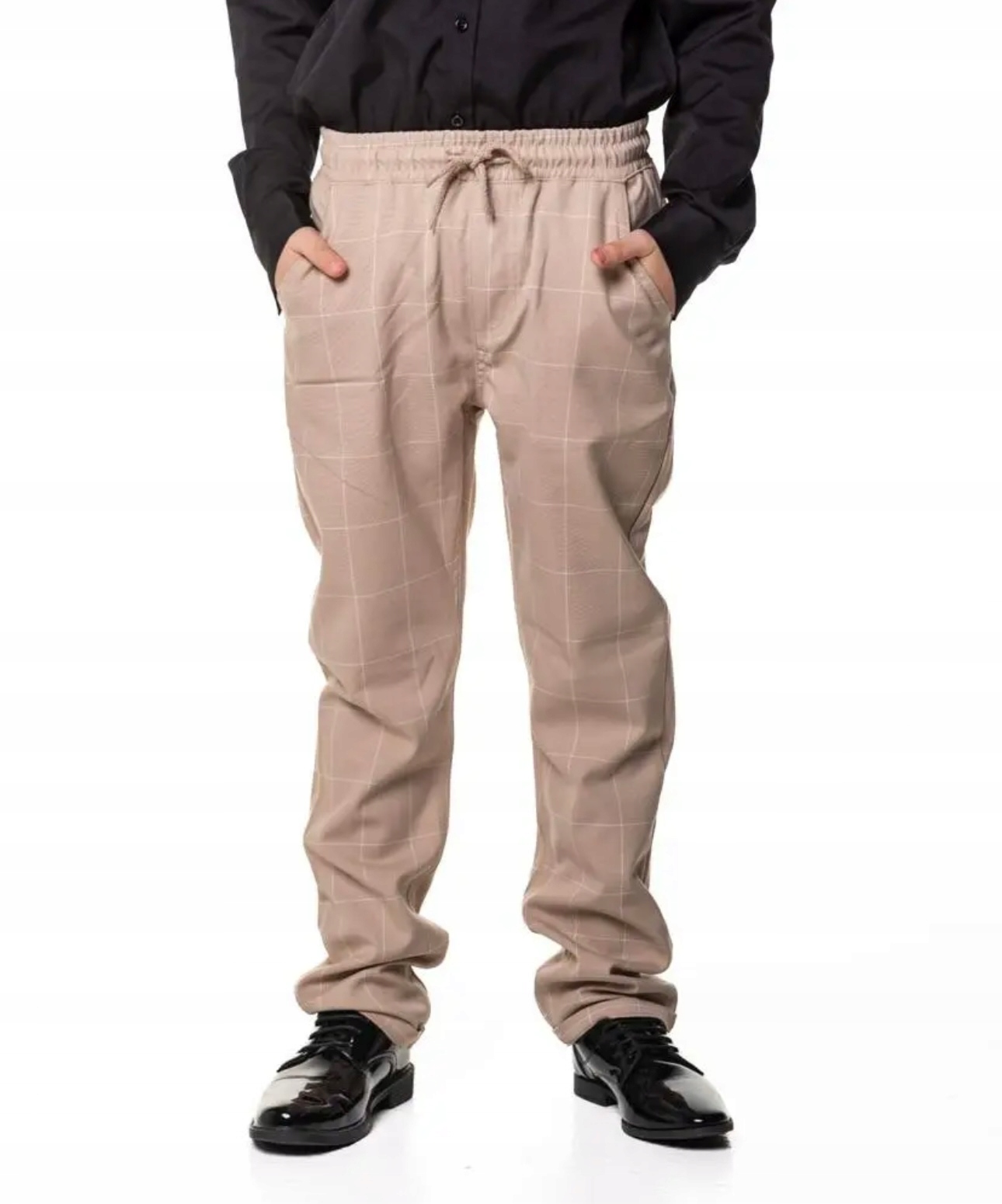 Елегантні хлопці штани бежева решітка (на еластичній) 128