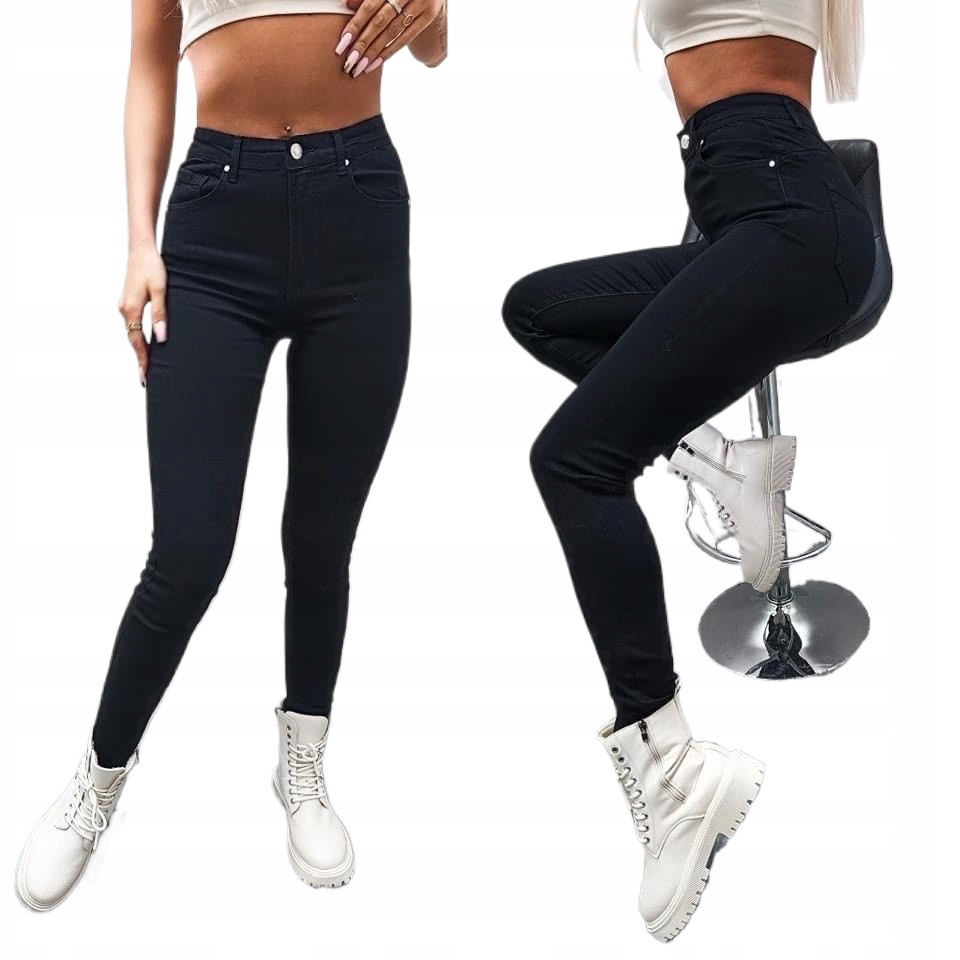 ЕЛЕГАНТНІ ЖІНОЧІ ДЖИНСИ НА ГУМЦІ, ЧОРНІ, ПУШ АП, XS