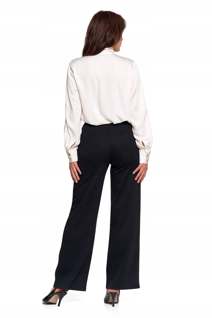 ЕЛЕГАНТНІ ЖІНОЧІ ШТАНИ З ВИСОКОЮ ТАЛІЄЮ, СМУЖКИ MORAJ, ЧОРНІ L
